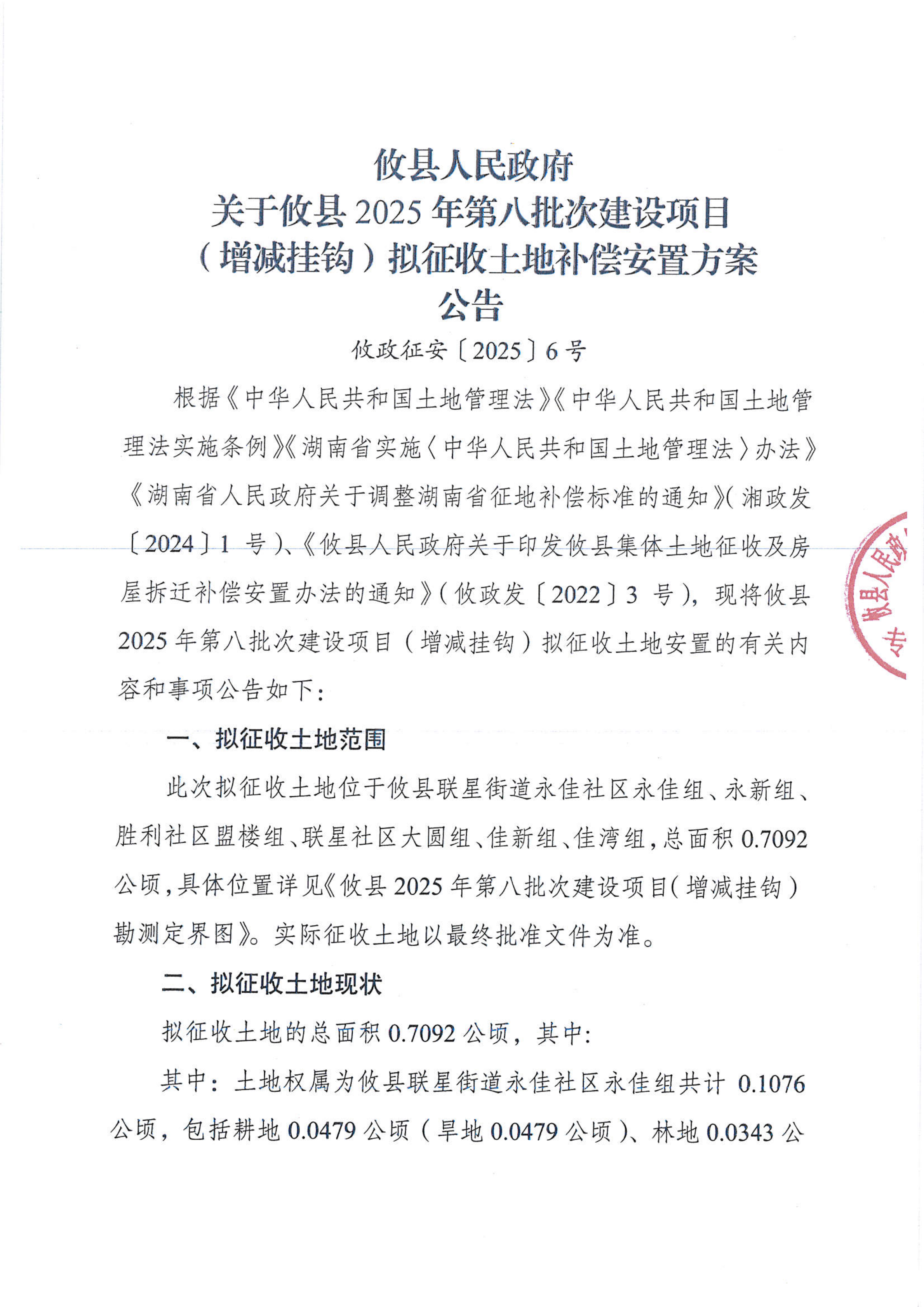 关于攸县2025年第八批次建设项目(增减挂钩)《拟征收土地补偿安置方案公告》