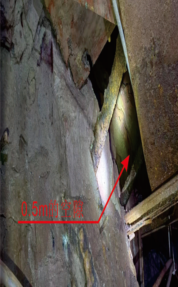 事故地点巷道支护及巷道底板侧0.5m的空隙区