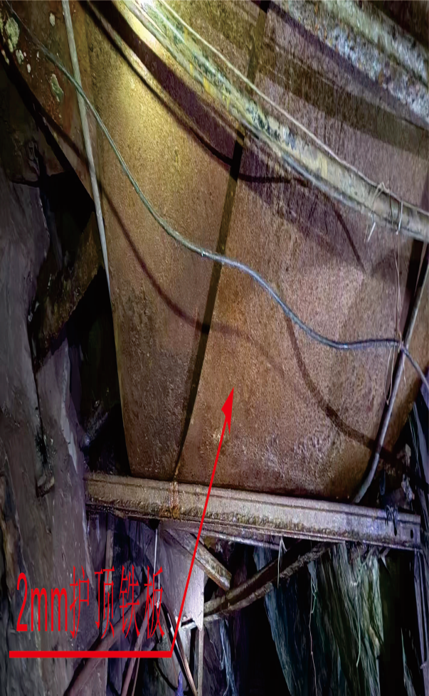 1. 事故地点顶部老巷矿石离层失稳,护顶不严实,留有500mm宽的空隙,用2mm的铁板作假顶,造成安全假象。