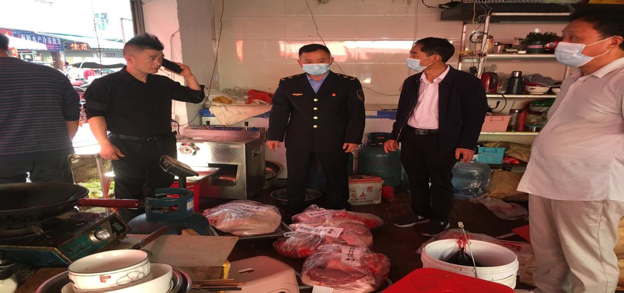 4月19日,攸县市场监管局对辖区部分农贸市场内的肉食经营户进行突击检查,重拳打击非法销售未经检验检疫猪肉(即"白板肉")行为,维护肉品市场经营秩序。