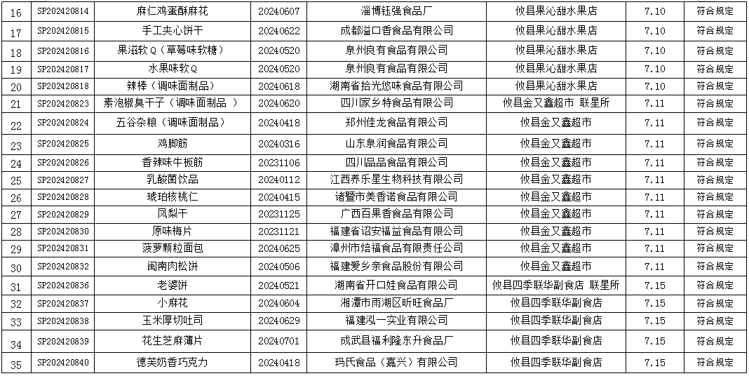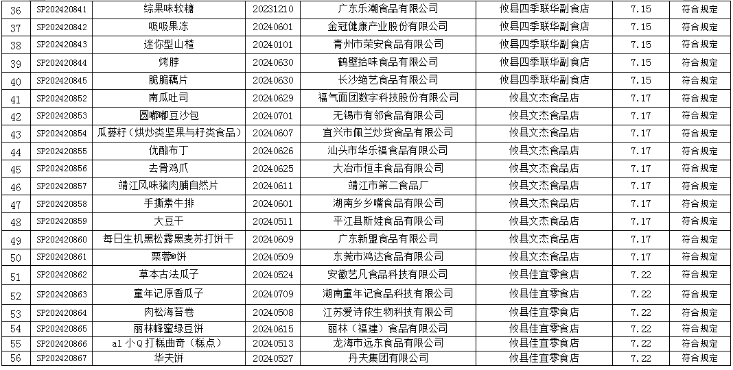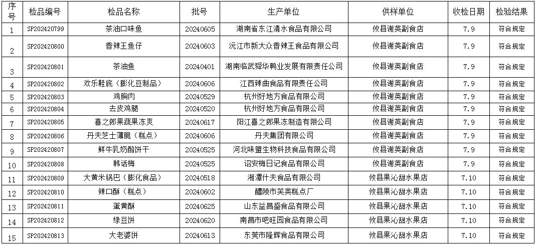 攸县市场监督管理局2024年第三季度食品抽检信息公示