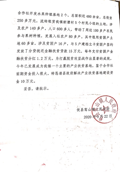 根据攸县鸾山镇人民政府关于解决鸾山镇产业扶贫基地建设资金的报告,本次拨付攸县鸾山镇5万元整用于扶贫产业基地建设。