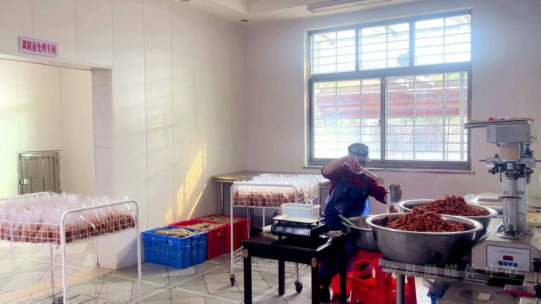 村民贺美兰:“我在这里包装麻辣豆腐,一天工作8小时,月收入有3千多元。”
