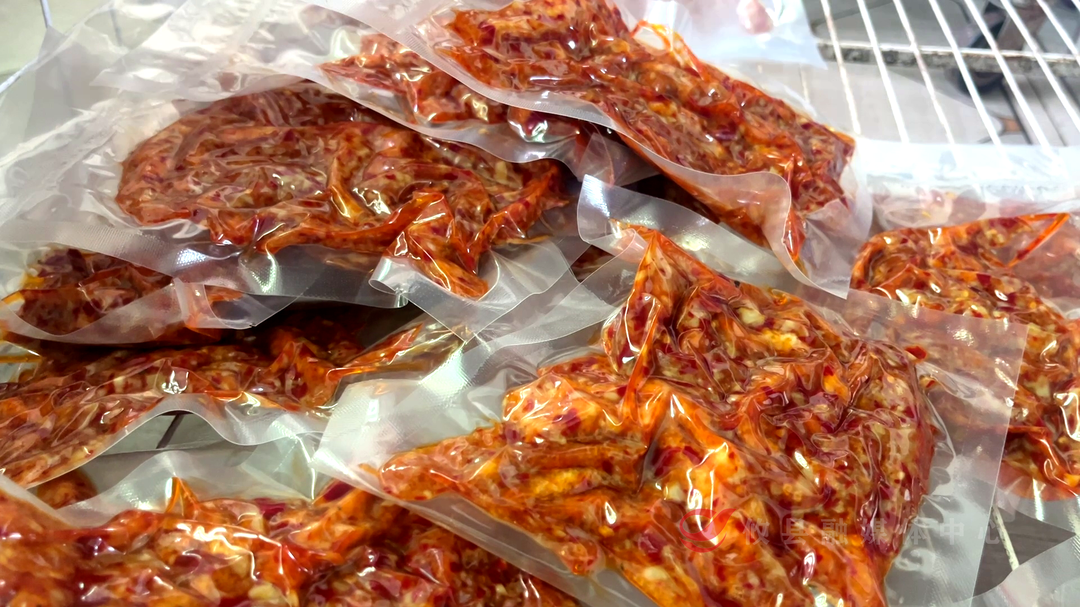 攸县聚福康农业开发有限公司洪伟新:“我们这个麻辣豆腐零色素、零甜味剂、零辣椒精,纯手工制作,自己调的辣椒油、香料。”