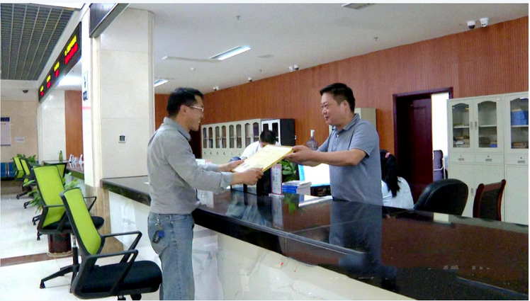 艾硅特新材料有限公司项目经理陈万全:“我就来了这么一次,我们从提交资料,到现在领证差不多半个月的时间就可以了。这种一站式服务,可以让我们少跑路,办事效率又快,省心省力,也省时间。”