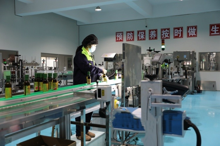 在亚美茶油股份有限公司包装车间,工作人员正在给经过压榨和精炼好的有机山茶油进行包装。据了解,新鲜的油茶果采摘回来后,经过公司独特的“5S压榨+6S精炼”双S技术,和低温压榨工艺,做到鲜果鲜榨冷提,保留山茶油的营养成分。