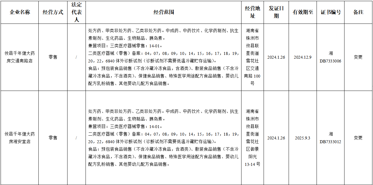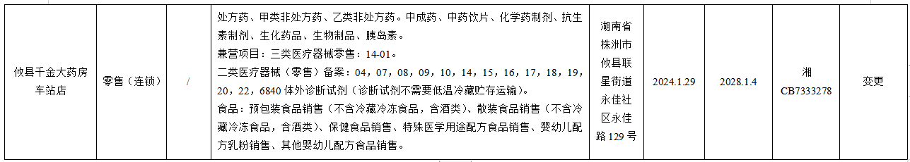 攸县市场监督管理局药品零售企业《药品经营许可证》许可信息公示(第24-02号)
