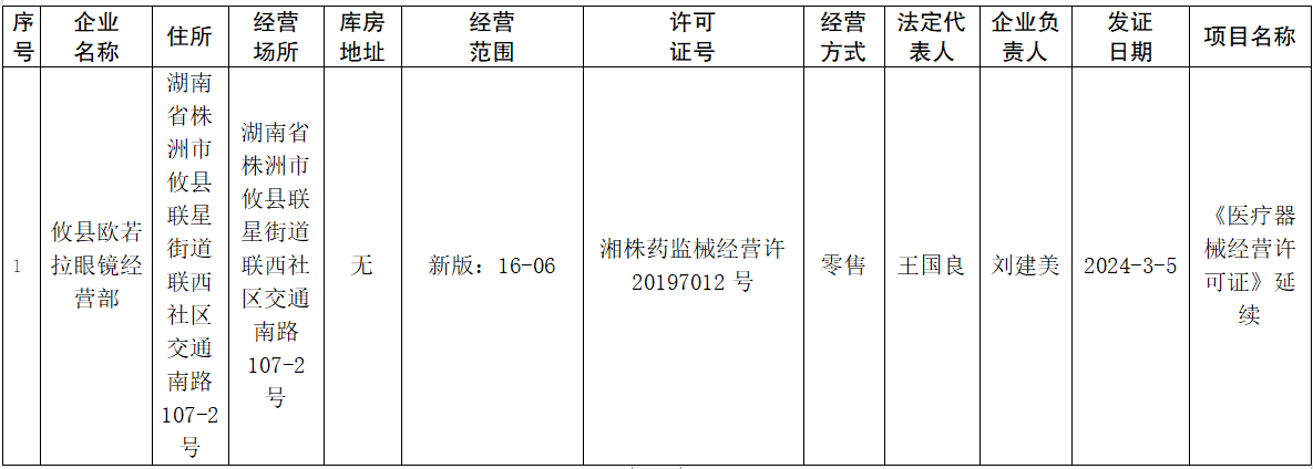 攸县市场监督管理局医疗器械许可信息公示(第24-03号)