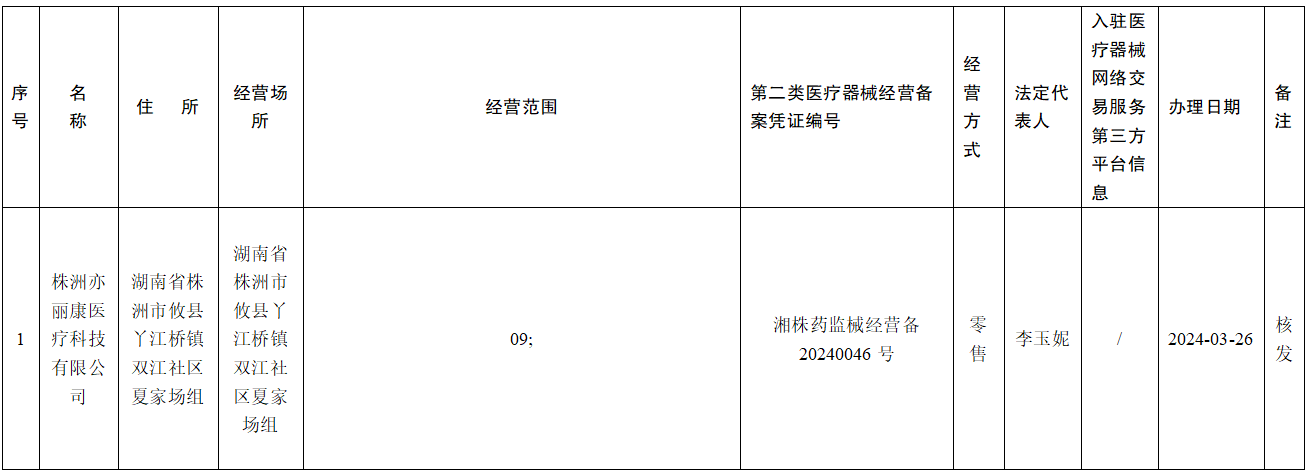 攸县市场监督管理局医疗器械备案信息公示(第24-05号)