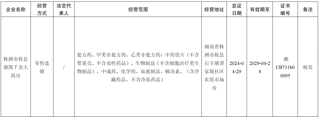 攸县市场监督管理局药品零售企业《药品经营许可证》许可信息公示(第24-06号)