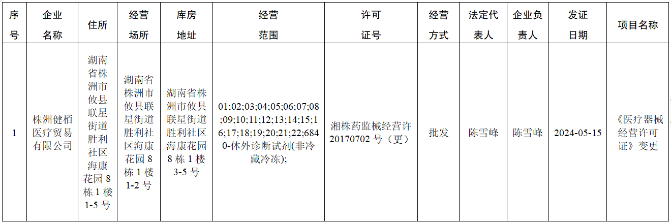 攸县市场监督管理局医疗器械许可信息公示(第24-08号)