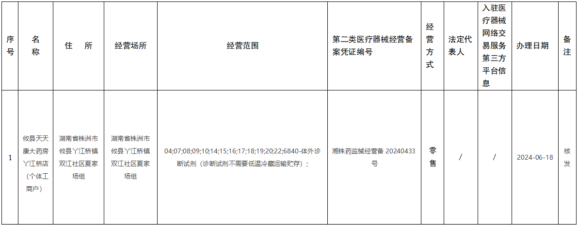 攸县市场监督管理局医疗器械备案信息公示(第24-10号)