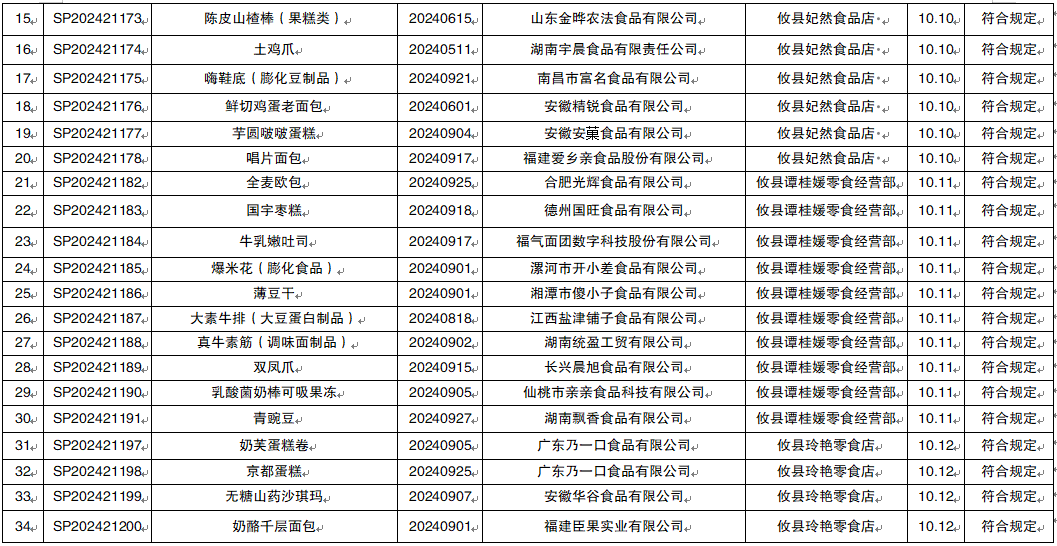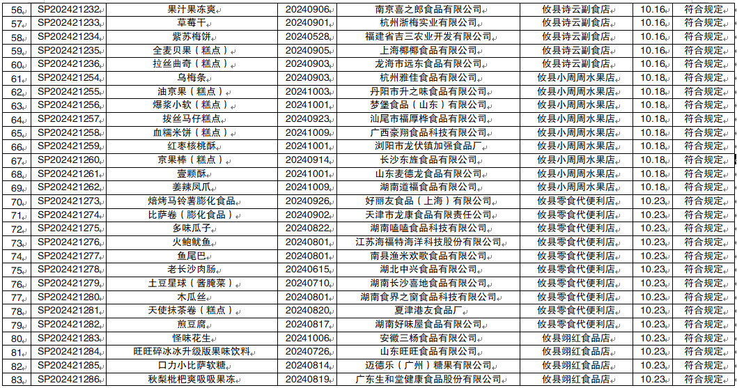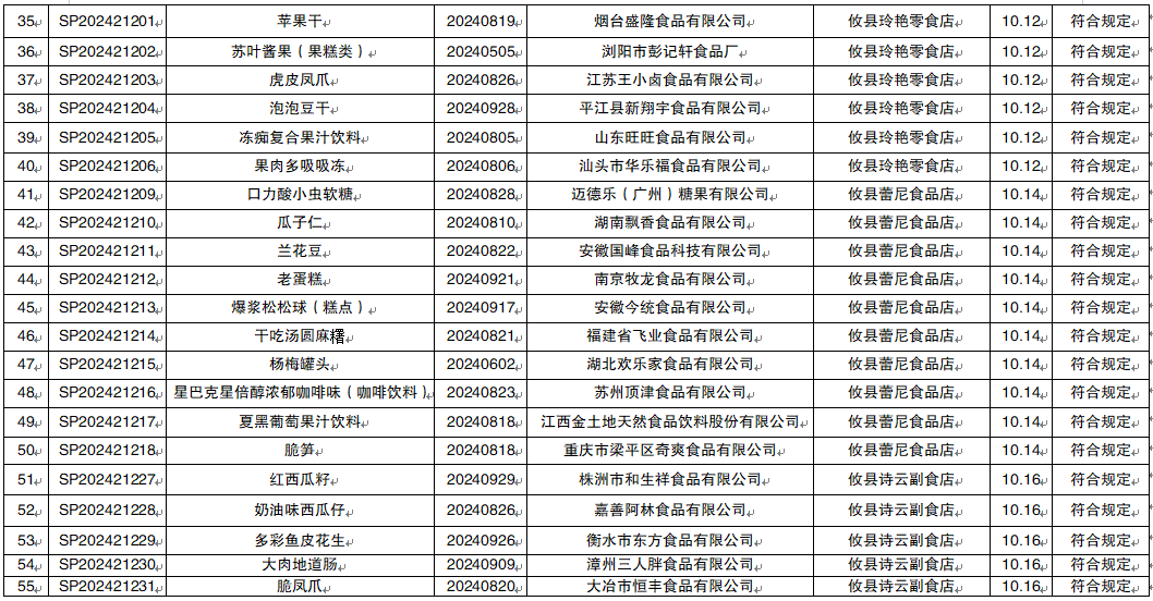 攸县市场监督管理局2024年第四季度食品监督抽检信息公示(1)