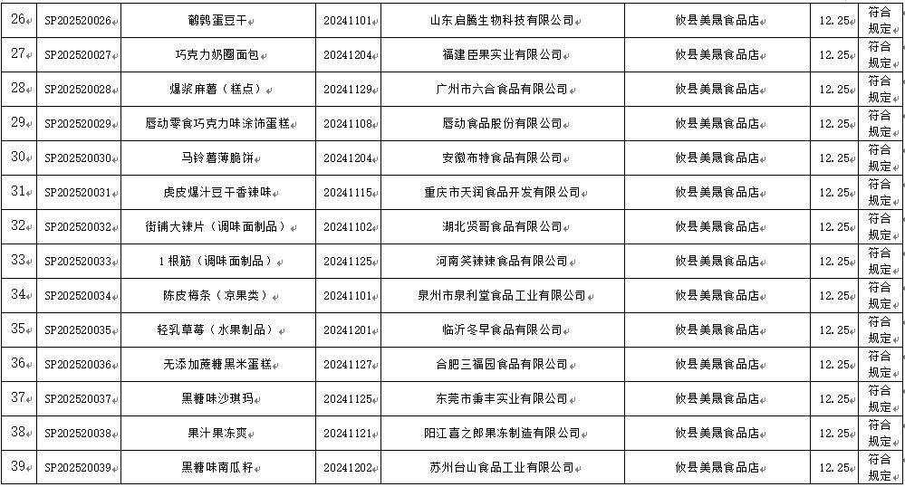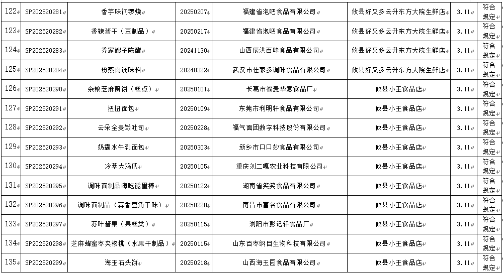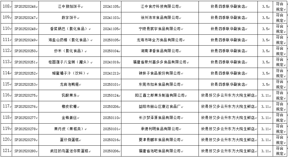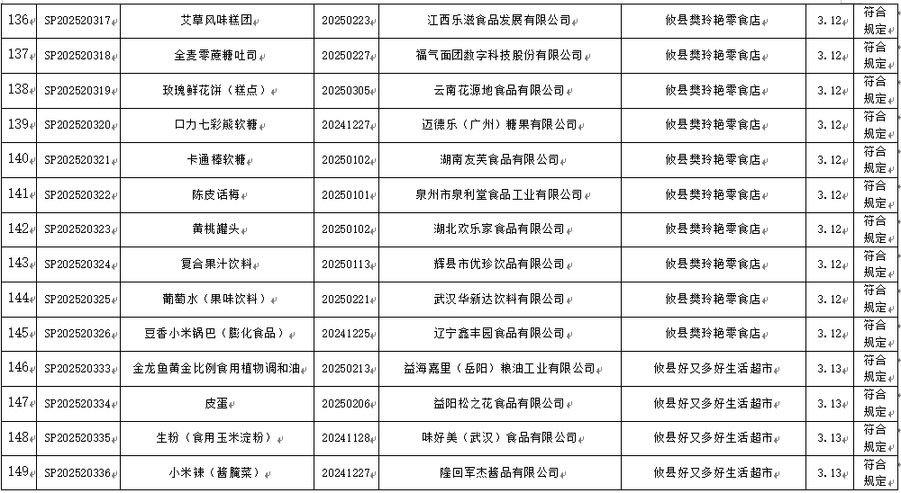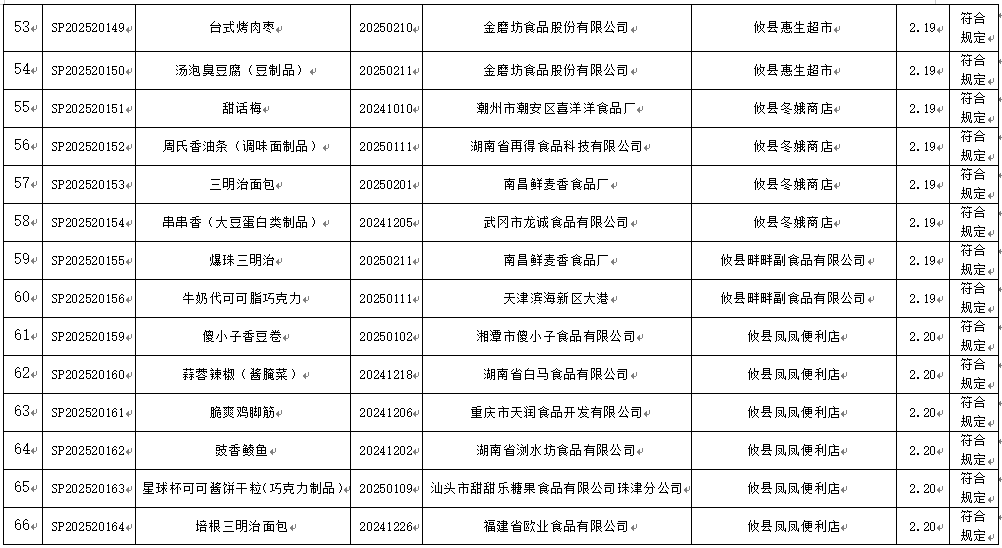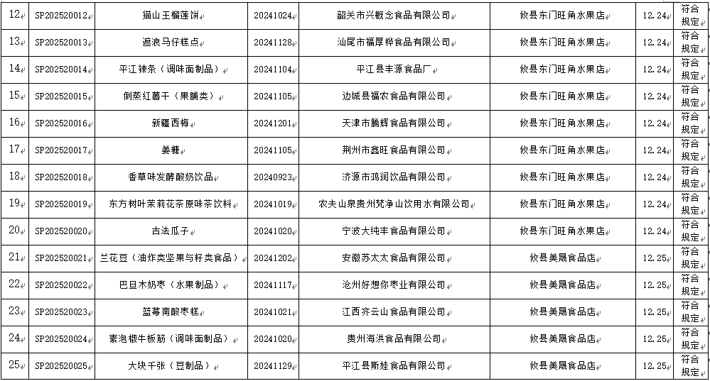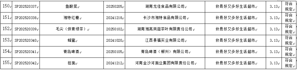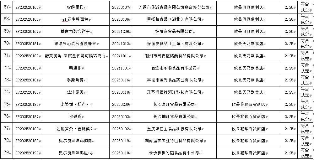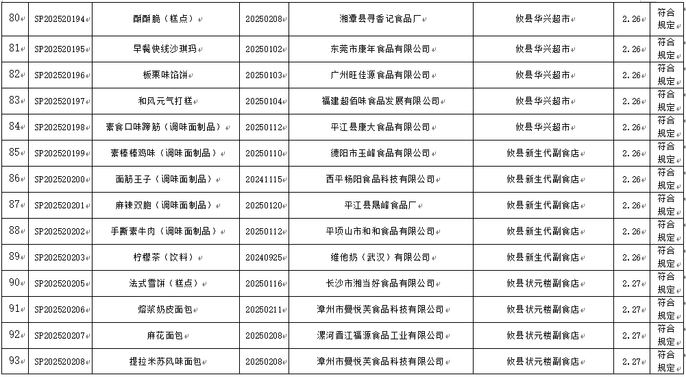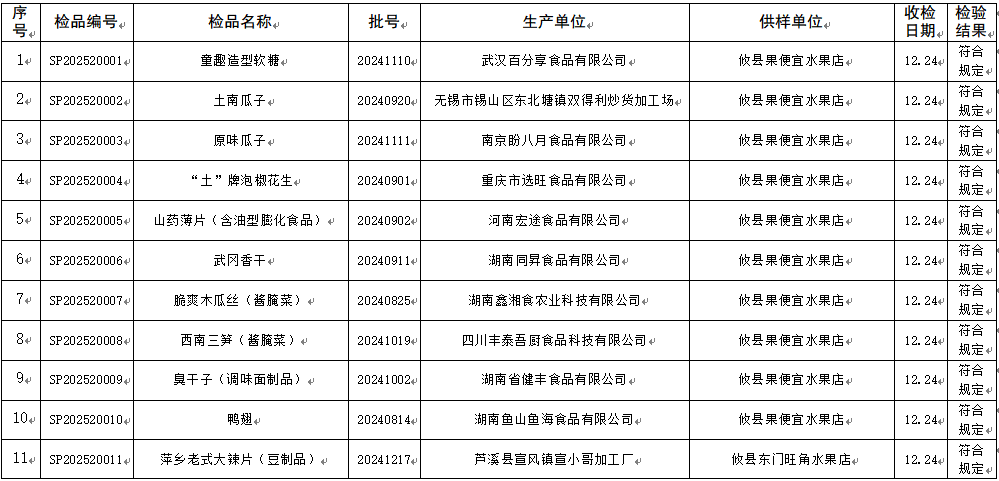 攸县市场监督管理局2025年食品抽检信息公示(1)
