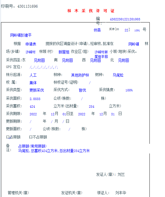 攸县林业局林木采伐许可证公示