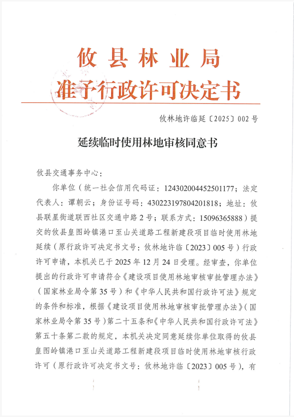 延续临时使用林地审核同意书(攸林地许临延〔2025〕002号)公告