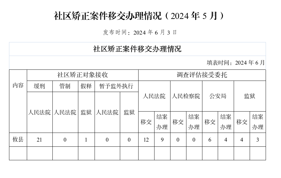 社区矫正案件移交办理情况(2024年5月)