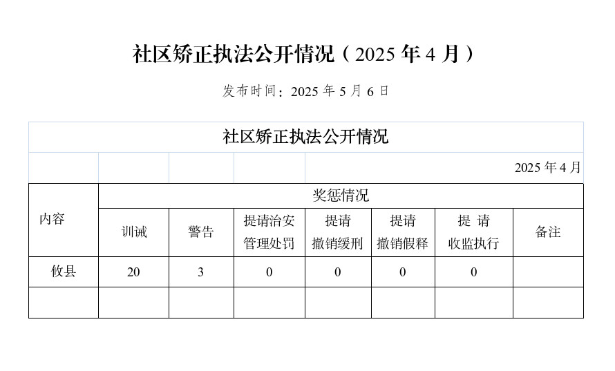 社区矫正执法公开情况(2025年4月)