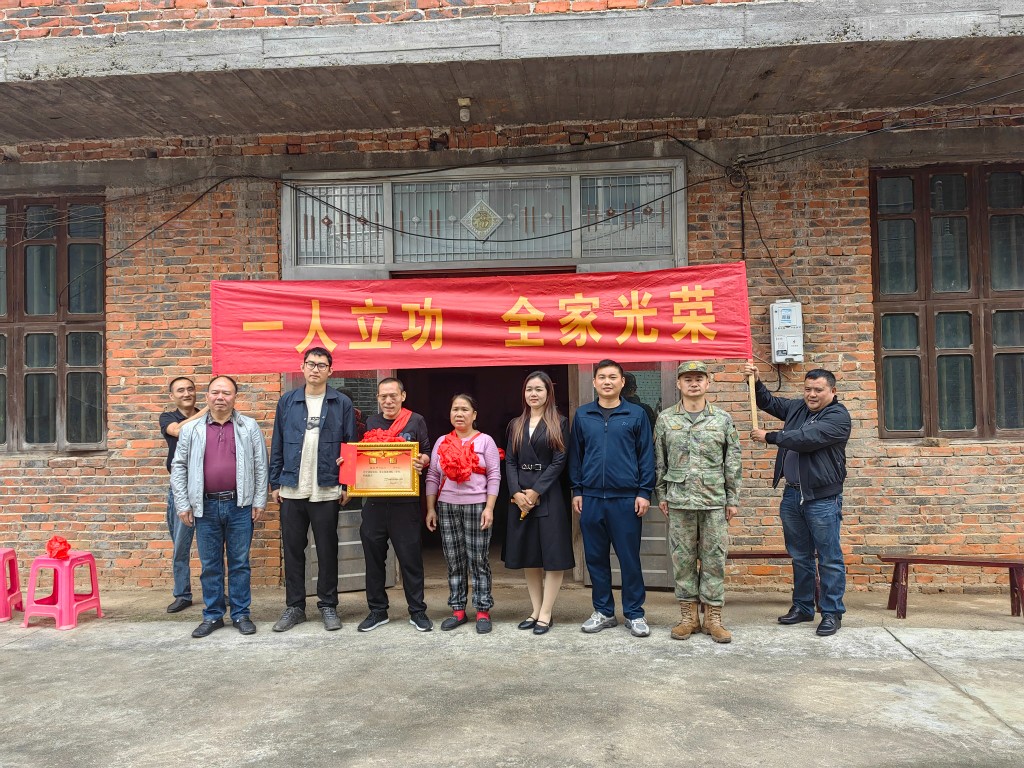 伴随着阵阵喜庆的锣鼓声,在醒目的“一人立功,全家光荣”的条幅下,11月14日上午,县人武部、县退役军人事务局有关负责人在菜花坪镇政府、渌田镇政府有关负责人的陪同下,分别到现役军人易卫平、刘志祥家送“三等功”喜报。