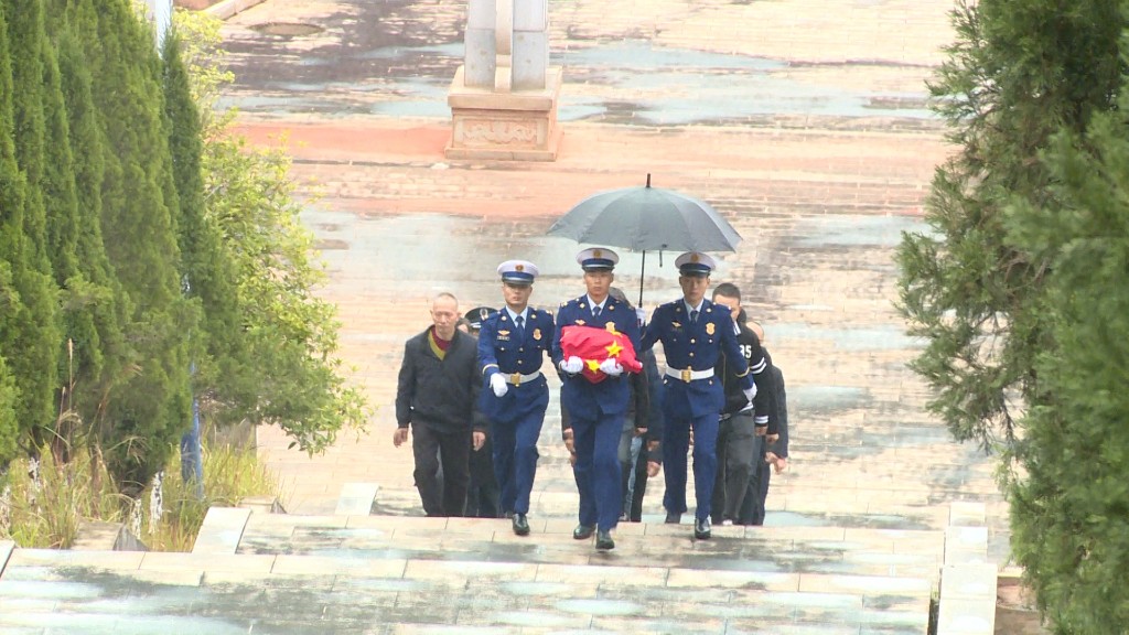 迁葬仪式上,礼仪人员迈着轻缓的正步,护送覆盖国旗的烈士棺椁到墓穴安葬。参加迁葬仪式的人员肃立致敬默哀,并向迁葬至墓区的烈士三鞠躬,表达了对革命烈士深切哀思和无限崇敬之情。