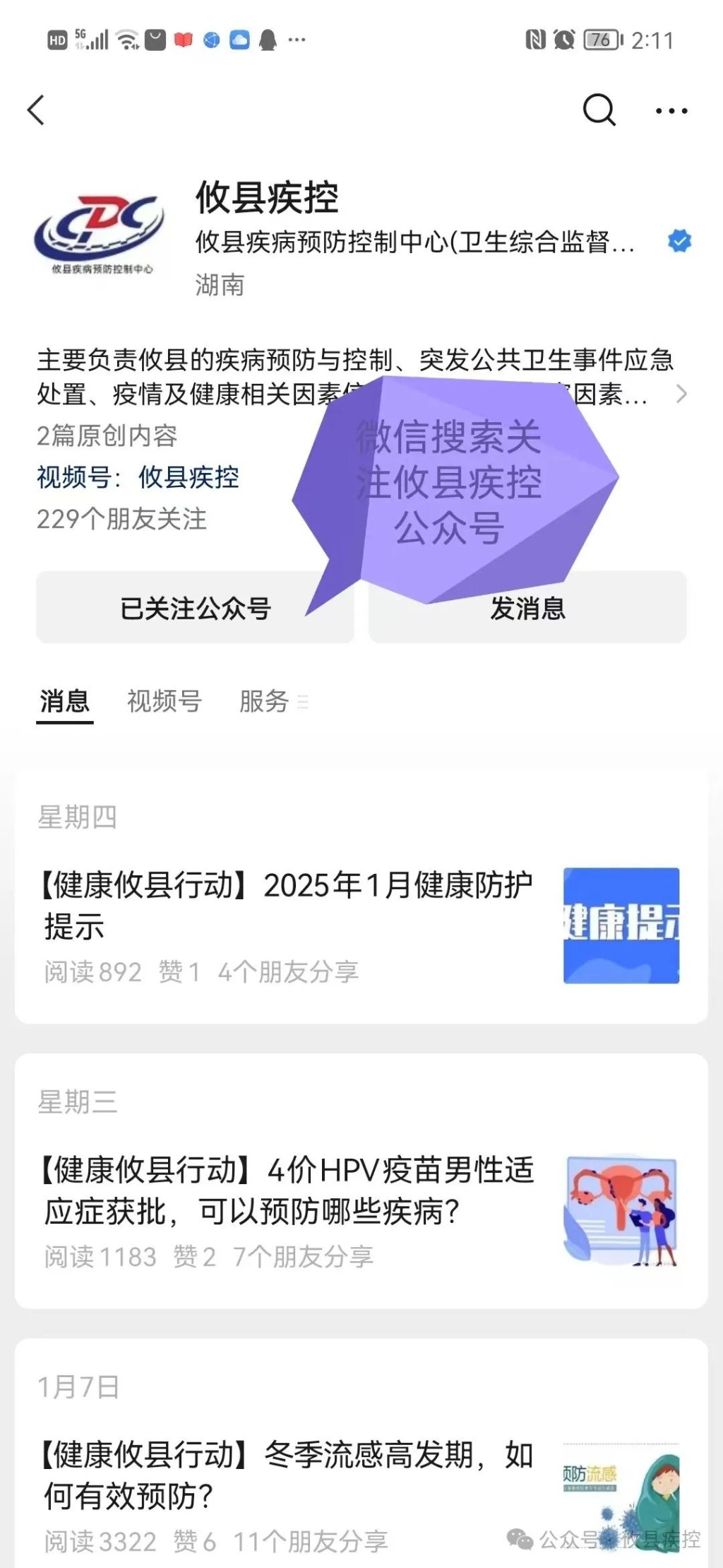 自2025年1月 22 日上午8:00起,攸县疾控预防医学服务中心预防接种服务项目可在“攸县疾控”微信公众号进行线上预约,微信公众号服务系统已全面升级,具有全县接种门诊列表、动物咬伤门诊地图、疫苗预约、便民服务等功能,让整个流程更便捷、更高效、更周全!为您省时、省心、省力!