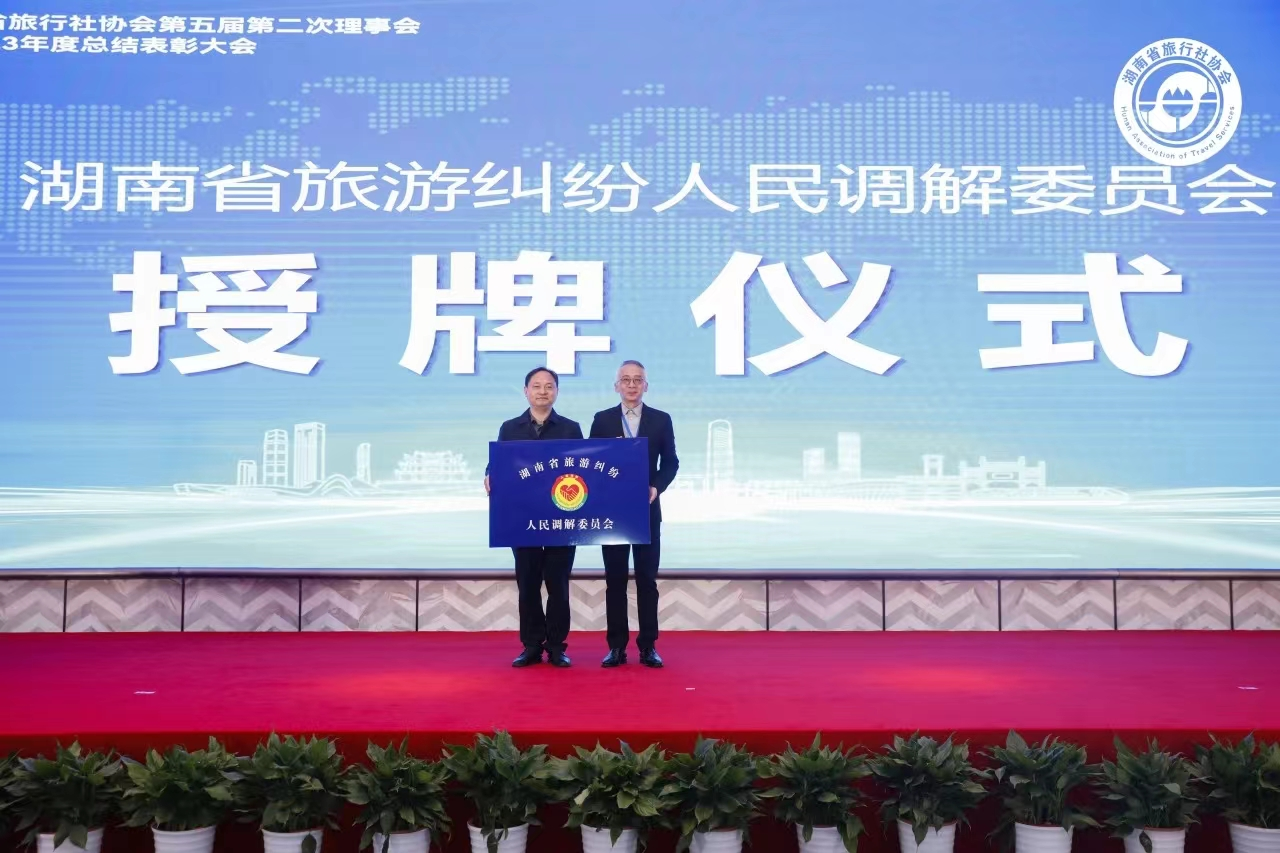 3月22日,湖南省旅行社协会第五届第二次理事会在长沙召开。湖南省文化和旅游厅党组成员、副厅长颜长文出席会议,并为湖南省旅游纠纷人民调解委员会授牌。