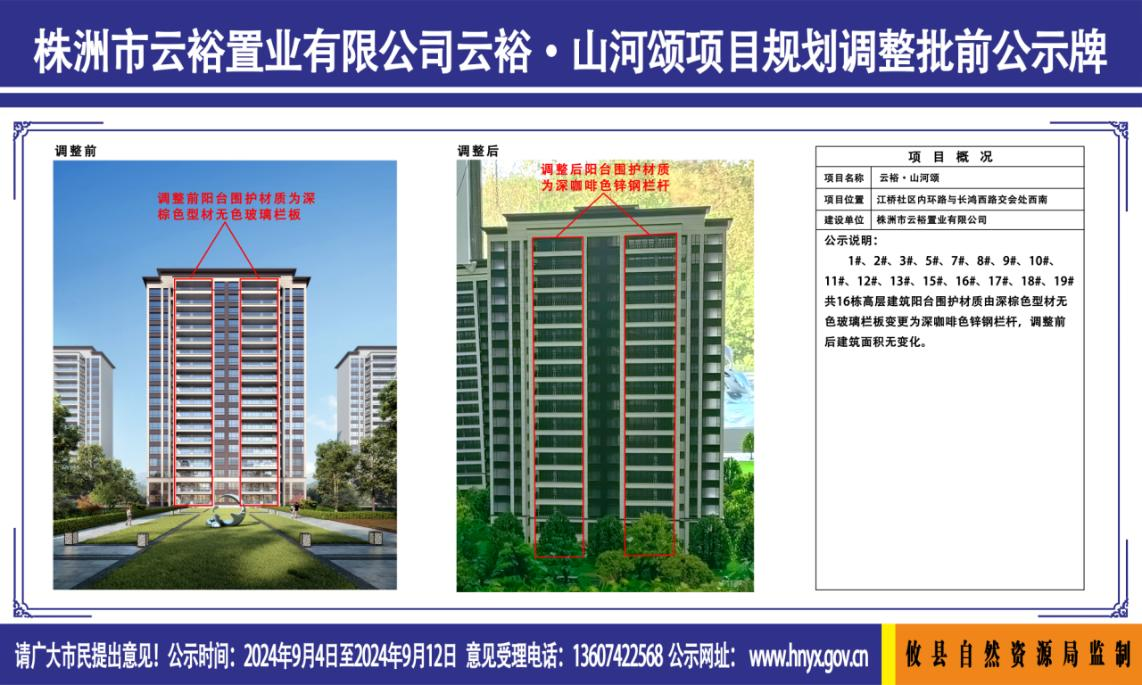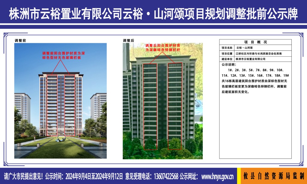 株洲市云裕置业有限公司云裕·山河颂项目规划调整批前公示牌