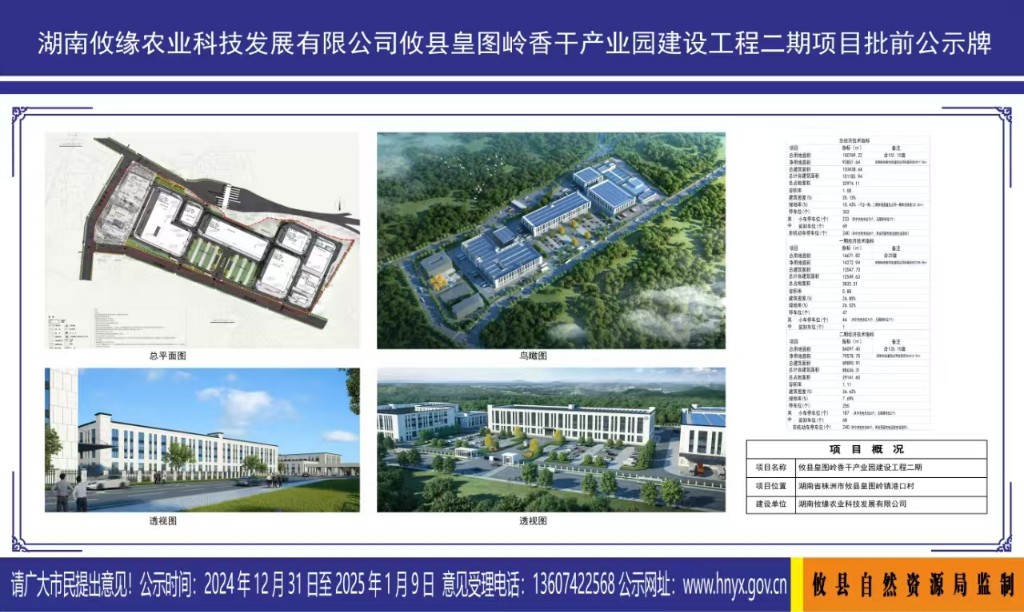 湖南攸缘农业科技发展有限公司攸县皇图岭香干产业园建设工程二期项目批前公示牌