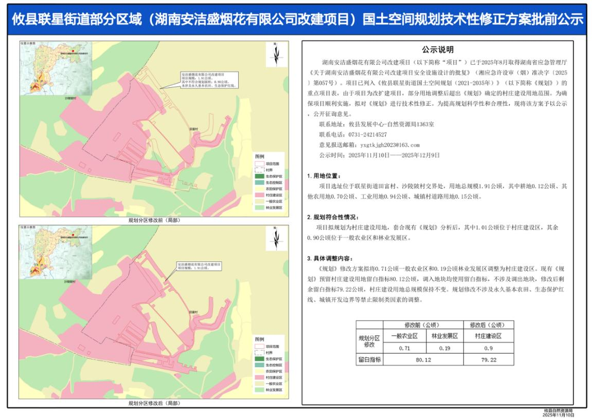 攸县联星街道部分区域国土空间规划技术性修正方案批前公示