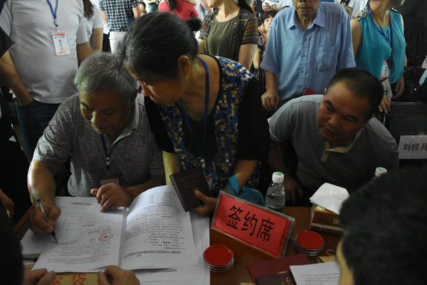据悉,此次集中签约改造的项目为西阁棚户区改造三期。上午9点,签约仪式在西阁棚改指挥部正式举行。在工作人员宣读完相关注意事项后,今年69岁的棚改户张国胜第一个完成签约,并郑重地在签约文本上按上了自己的手印。