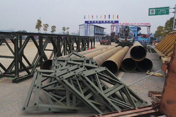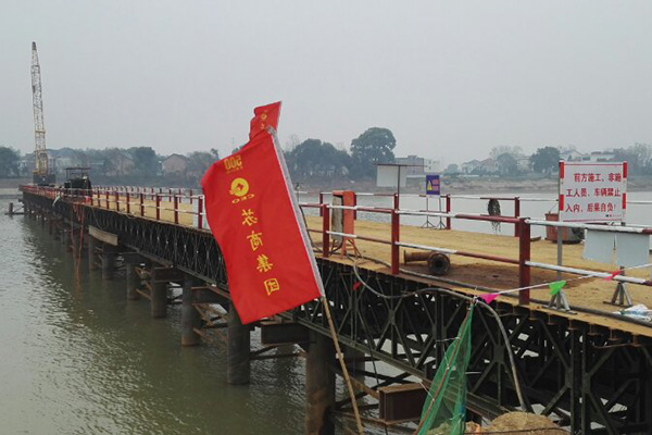 主栈桥位于洣水四桥上游,与之相距3米,采用钢管桩和贝雷桁架搭设。据承建大桥建设项目的苏辰建设集团有限公司工程技术人员介绍,栈桥建设是水上作业的前提,用于主桥建设机械作业、材料运输等,各类大型施工车辆、载重车辆可通过栈桥直达水上作业面,为工程主体施工开辟一条水上交通大动脉。