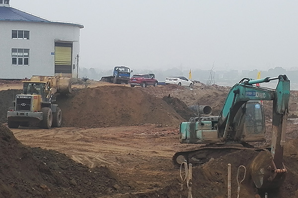 1月17日,记者在洣水四桥及连接线建设项目施工现场看到,大型吊车正在轰鸣作业,工人师傅也在紧张施工当中,河面上钢管桩林立,主桥建设需要的栈桥正在如火如荼地进行平台打桩和桥面铺装,现场一片繁忙景象。