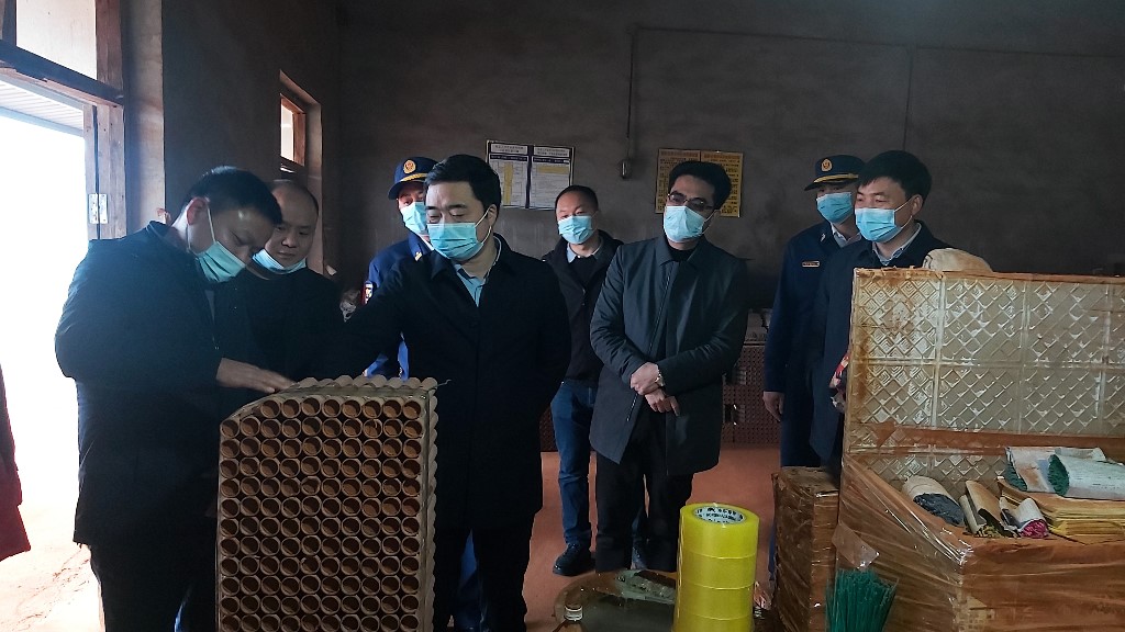 在新市镇远滨烟花制造有限公司,李鹏程一行来到企业监控室,查看企业生产流程和安全生产责任落实情况,深入企业烟花存储仓库及装药车间,详细了解烟花爆竹存储安全防范措施落实情况,并和一线工人进行面对面交流,叮嘱工人在工作中一定要牢记安全。李鹏程指出,安全生产事关全县发展大局,要严格落实值班值守制度和烟花爆竹产品流向登记制度,加大对烟花爆竹装卸、存储、配送等各个环节的安全检查,防微杜渐,坚决堵塞各种不安全漏洞,确保安全生产、安全经营。