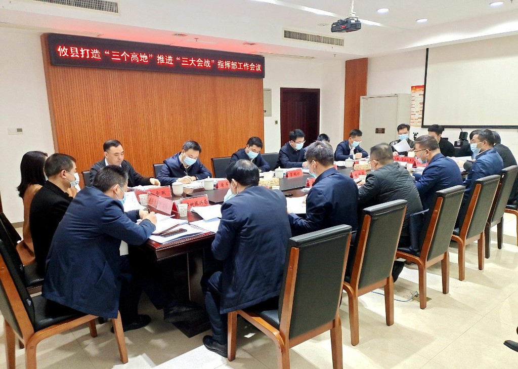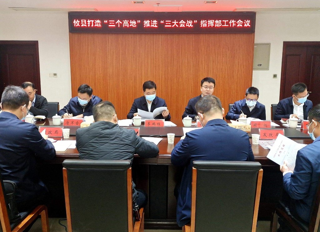 3月22日,县委书记李鹏程来到县打造“三个高地”推进“三大会战”指挥部调研。他强调,要强化统筹谋划、调度推进、创先争优,努力在打造“三个高地”推进“三大会战”中走在前列。