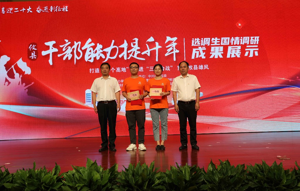 全县27名选调生组成的6个课题调研组聚焦打造“三个高地”、推进“三大会战”,重振攸县雄风,运用访谈、快板、播报等舞台形式,依次展示了《关于攸县高新区化工园区高质量发展的思考》、《乡村集体经济发展案例浅析》、《攸县青年说——关于乡镇青年干部产业振兴能力路径调研报告》、《浅谈攸县香干产业发展现状、所处困境及应对策略》、《关于培育壮大攸县市场主体的调研报告》、《“湘赣红”区域公用品牌建设情况的调研与思考》等6个国情课题调研成果。这些调研既有对培育壮大攸县市场主体的设计和规划,又有对攸县香干产业发展、创建“五好”园区建设的意见和建议,更有如何运用“湘赣红”区域公用品牌建设发展、提升乡镇青年干部产业振兴能力的系统思考。对此,评委在点评时给予高度肯定,认为各位选调生的调研报告理论鲜明、逻辑严谨,基层调研真实全面,问题分析准确深刻、意见建议有很强的启发意义,充分展示了素质过硬、本领过硬、充满活力的攸县选调生队伍。