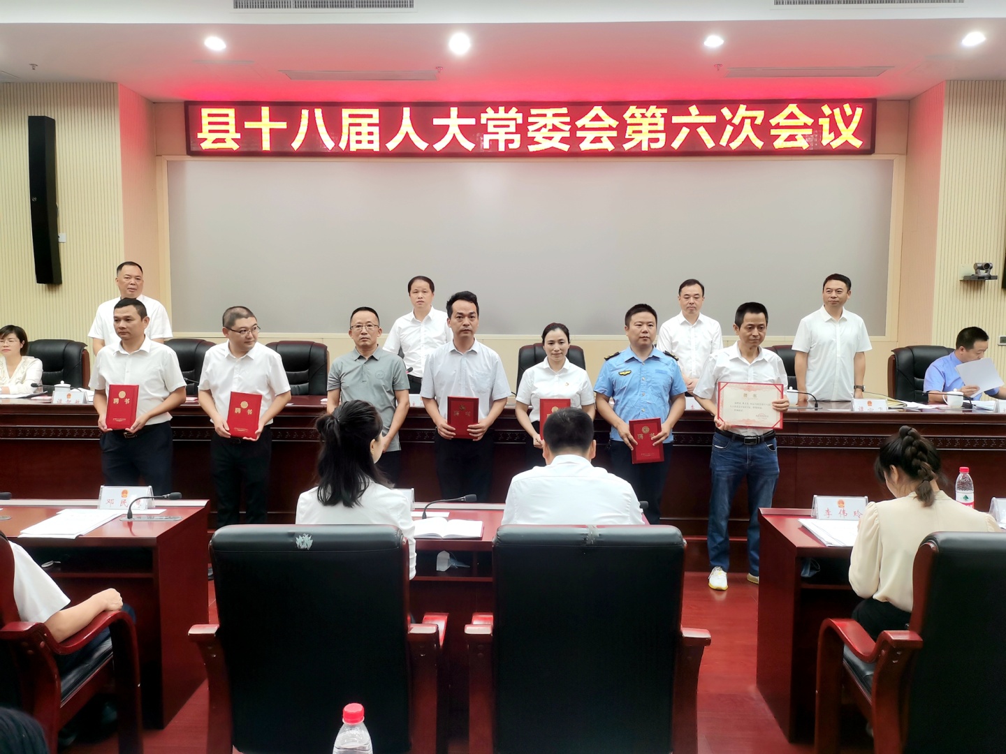 会议通过了本次会议议程(草案);会议宣读了《关于聘任彭志敏等27位同志为县十八届人大常委会专家库专家的通知》,并颁发了聘任证书。据了解,建立县十八届人大常委会专家库是践行全过程人民民主的生动实践,对于凝聚各方智慧和力量,进一步提高人大工作科学化、民主化、法制化、专业化具有重要意义。