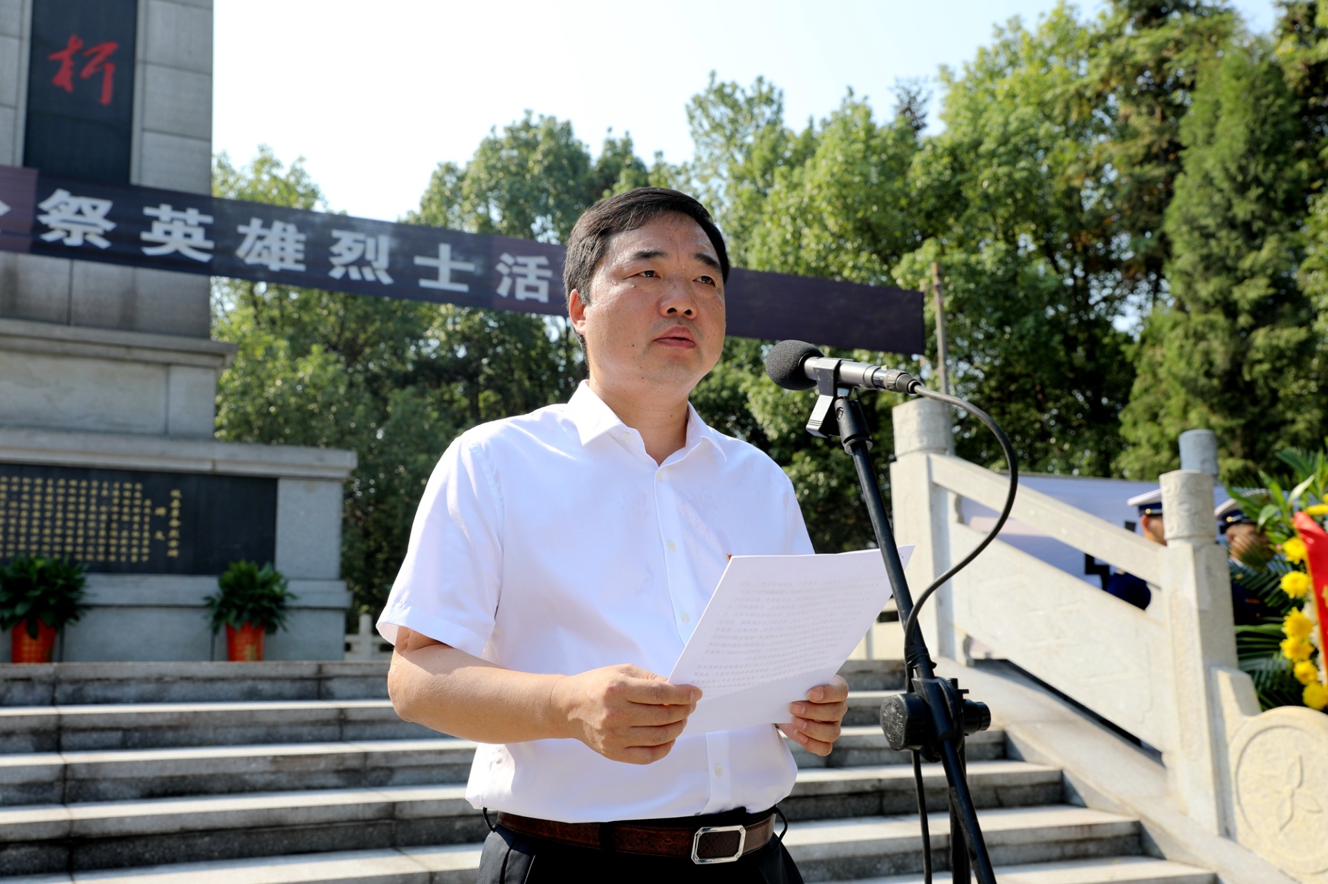 县委书记李鹏程代表县委、县人大、县政府、县政协、县人武部以及82万攸县人民,向为中国革命和建设事业英勇献身的先烈们致以崇高的敬意和深切的悼念!向烈士亲属致以亲切的慰问!向一直以来继承先烈遗志、弘扬烈士精神、为攸县发展舍身忘我和无私奉献的仁人志士表示衷心的感谢!