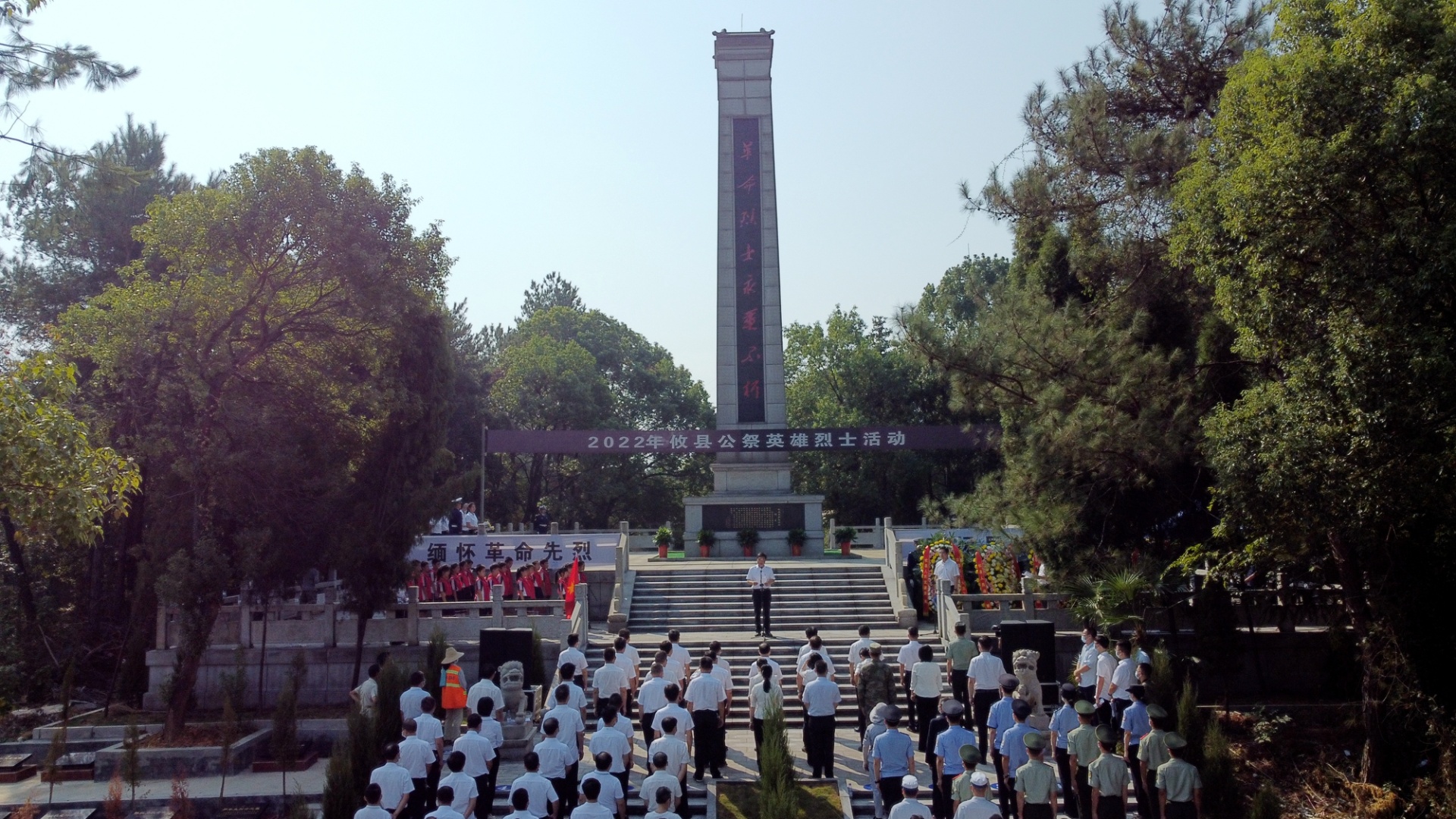 秋日暖阳下,修缮一新的烈士陵园松柏挺立、庄严肃穆,刻有“革命烈士永垂不朽”八个大字的纪念碑巍然矗立在烈士陵园中央。9时30分,在县委副书记、县长武挪强的主持下,公祭活动正式开始。