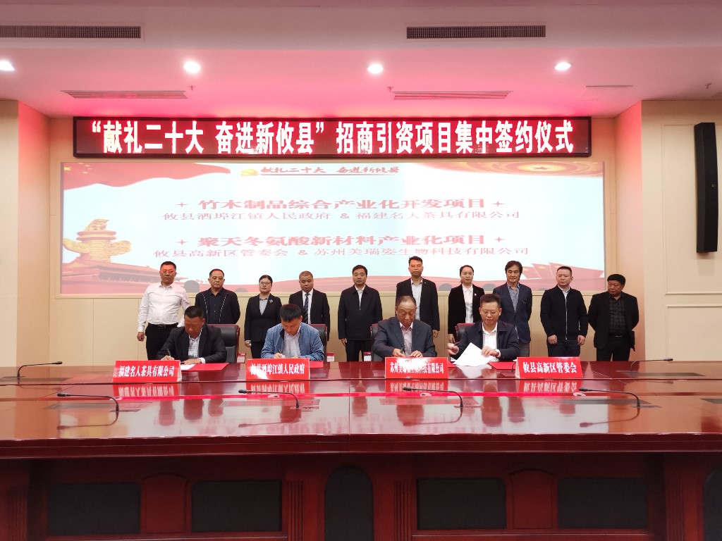 此次现场签约的10个项目分别为竹木制品综合产业化开发项目、聚天冬氨酸新材料产业化项目、年加工1000万件针织衫生产线建设项目、钾长石综合开发利用项目、光伏设备及元件制造项目、攸县100兆瓦200兆瓦时储能电站项目、锂离子电池负极材料产能扩建项目、文化博览产业园建设项目、年产6000吨UV单体项目和中农储攸县国际农贸城项目,项目涵盖高分子新材料等制造业项目,也有新能源、文化旅游、商贸综合体、农林产业化等多个领域,将对优化我县产业结构、促进经济又好又快发展起到积极的作用。