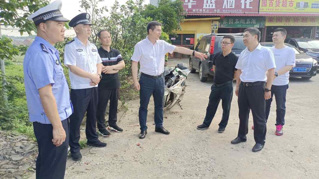 在洣水二桥南侧桥头附近,武挪强实地查看了周边道路环境、交通安全隐患排查治理等情况,对该道路存在的安全隐患问题,现场进行交办。
