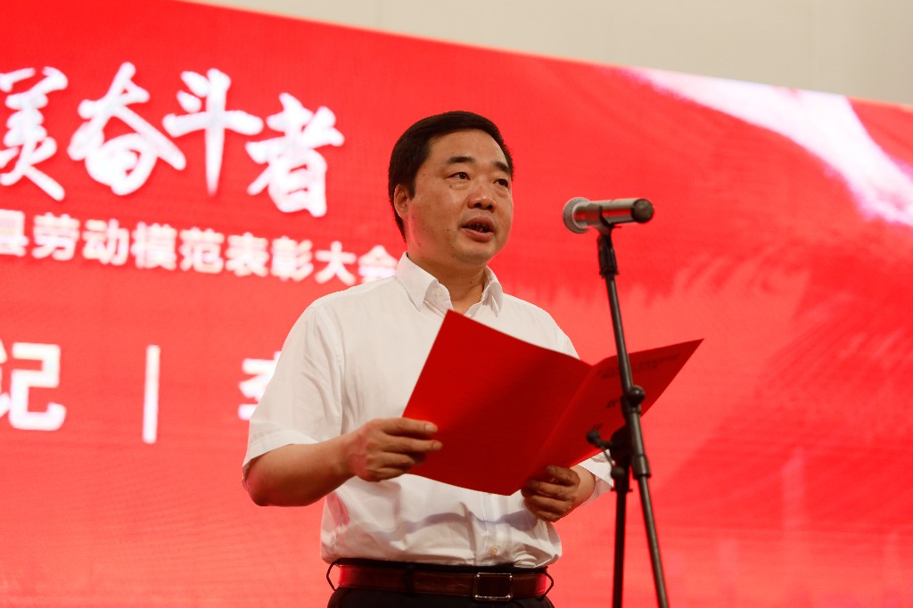 表彰大会在庄严的国歌声中拉开序幕。随后,县委书记李鹏程代表县委、县人大、县政府、县政协向受到表彰的劳动模范表示热烈的祝贺,向辛勤工作在全县各个行业、各条战线上的广大劳动者致以亲切的问候和崇高的敬意。