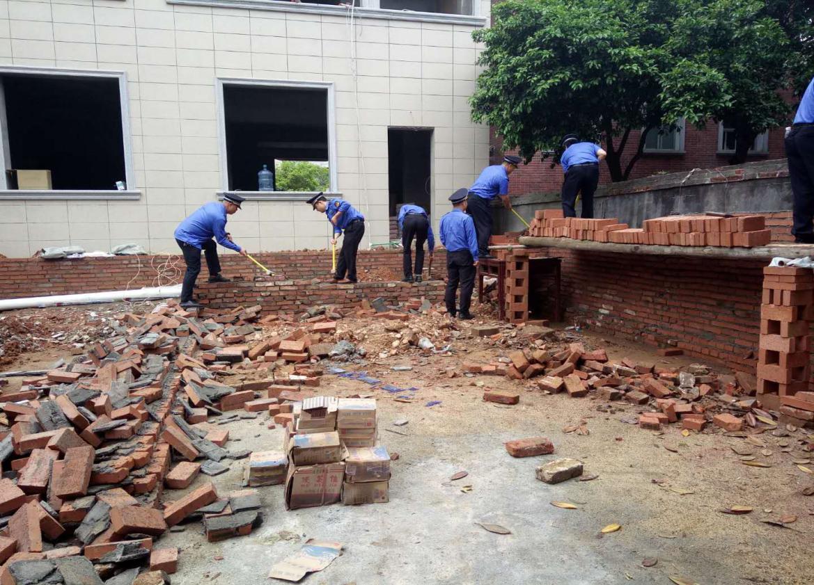 该三处违建均位于联星街道富康社区梅城花园小区内,当事人刘某某、邓某某、肖某某在未取得任何审批手续的情况下,利用五一假期突击抢建,拆违大队队员巡查发现后,当即制止了其违法建设行为。5月2日,县拆违办、拆违大队等单位工作人员再次上门协调,通过耐心细致地讲解法律法规和拆违控违相关政策,当事人最终认识到自身错误的严重性,配合执法人员将违建拆除到位。