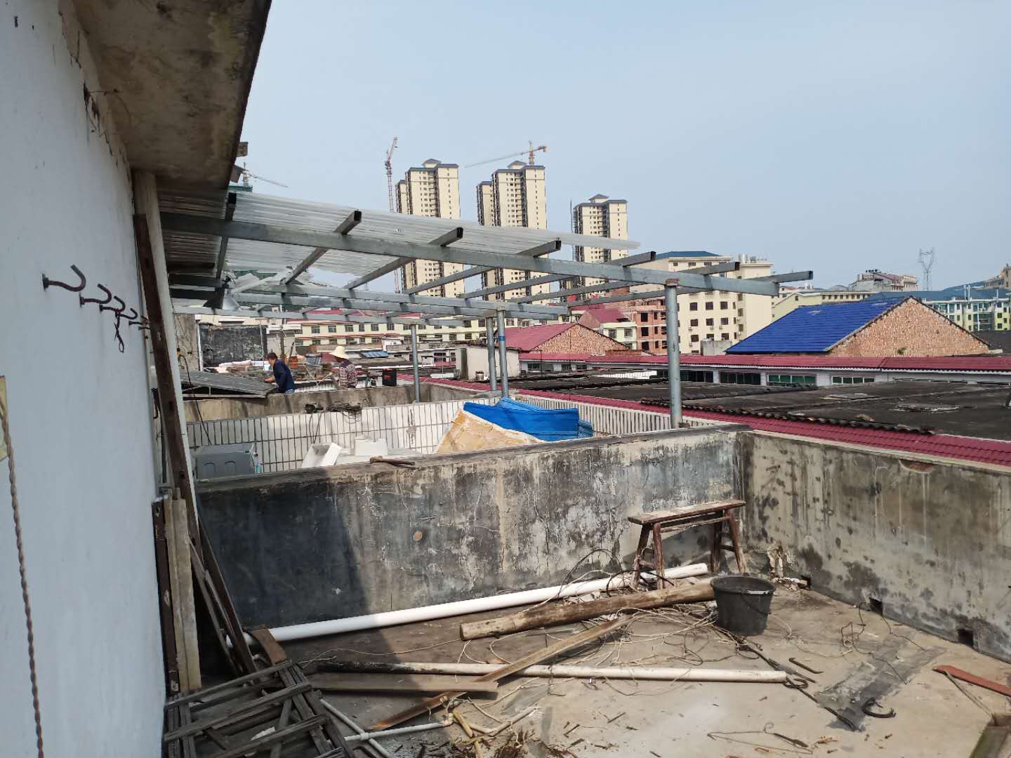位于联星街道工业路沿线,市民何某某、易某某、黄某、胡某某未经相关部门审批同意,擅自在房顶搭建钢棚,严重影响市容市貌,多部门单位联合将违建钢棚全部拆除,净化城市容貌。