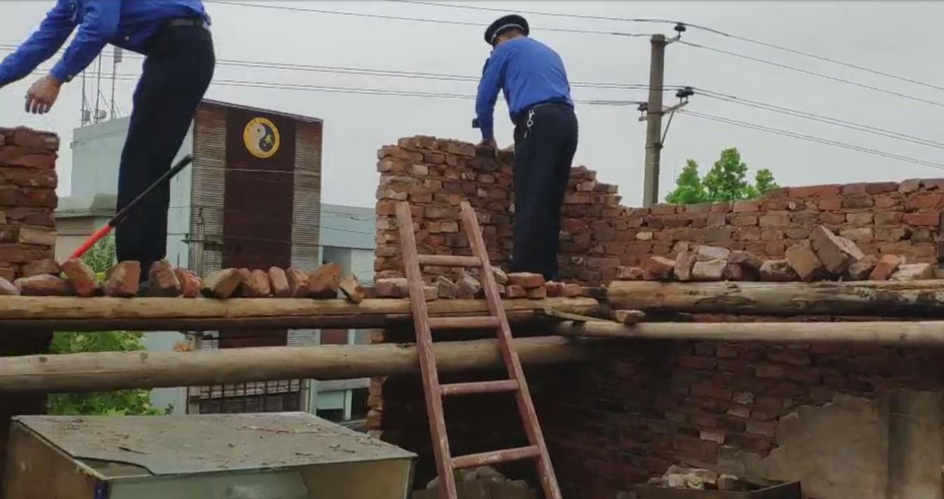 高岸村村民朱某超出规划审批面积建设房屋,多部门联合将超面积部分实施拆除。