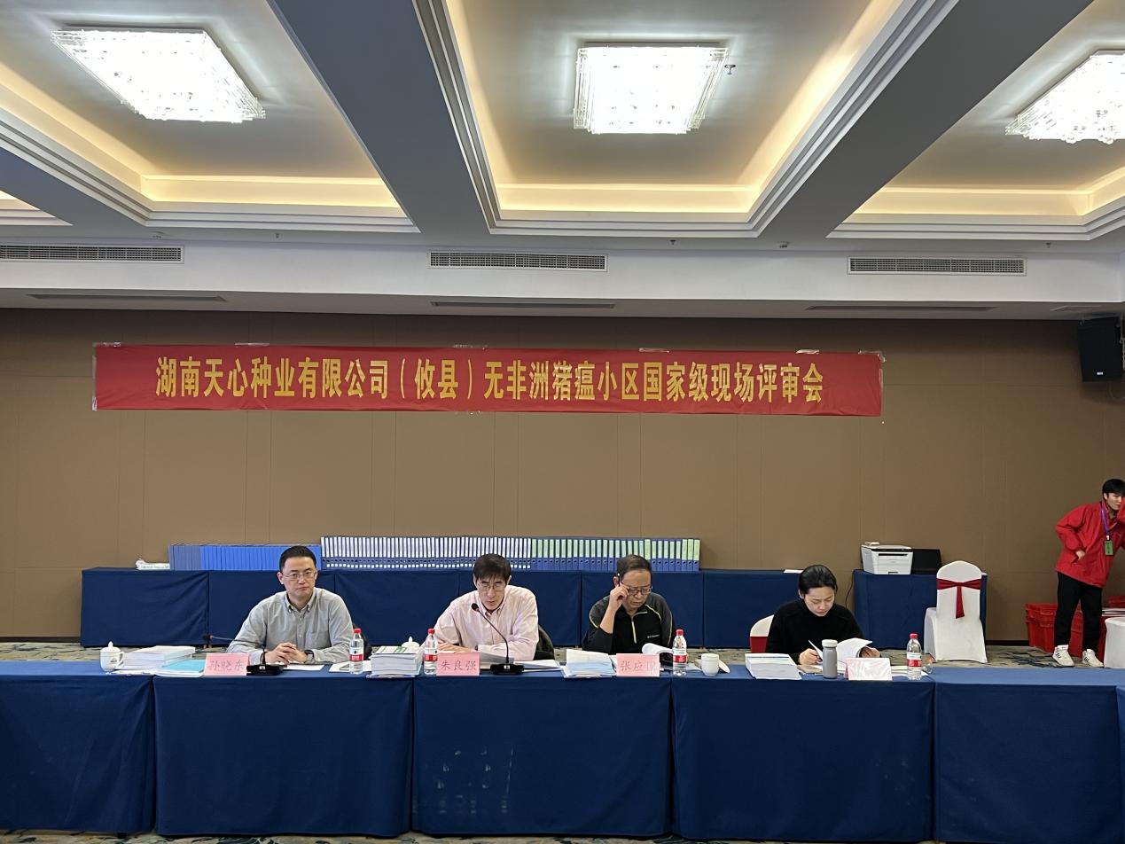 评审期间,专家组依据"听取汇报、查看现场、座谈交流"的流程,先后听取了攸县天心种业有限公司非洲猪瘟无疫小区建设情况以及攸县畜牧水产事务中心官方监管情况的汇报,详细查阅了非洲猪瘟无疫小区建设相关档案资料,并前往现场查看了天心种业原种猪场、尧泰基地、江口基地、洗消中心等各个生产单元以及县兽医实验室、新市镇疫控中心、渌田镇疫控中心等场所。专家组对照《无非洲猪瘟小区现场评审表》开展了书面评审和视频连线审查,仔细查验了攸县天心种业有限公司和监管单位的各类台账资料、生产基地生物安全管理体系建设运行情况。