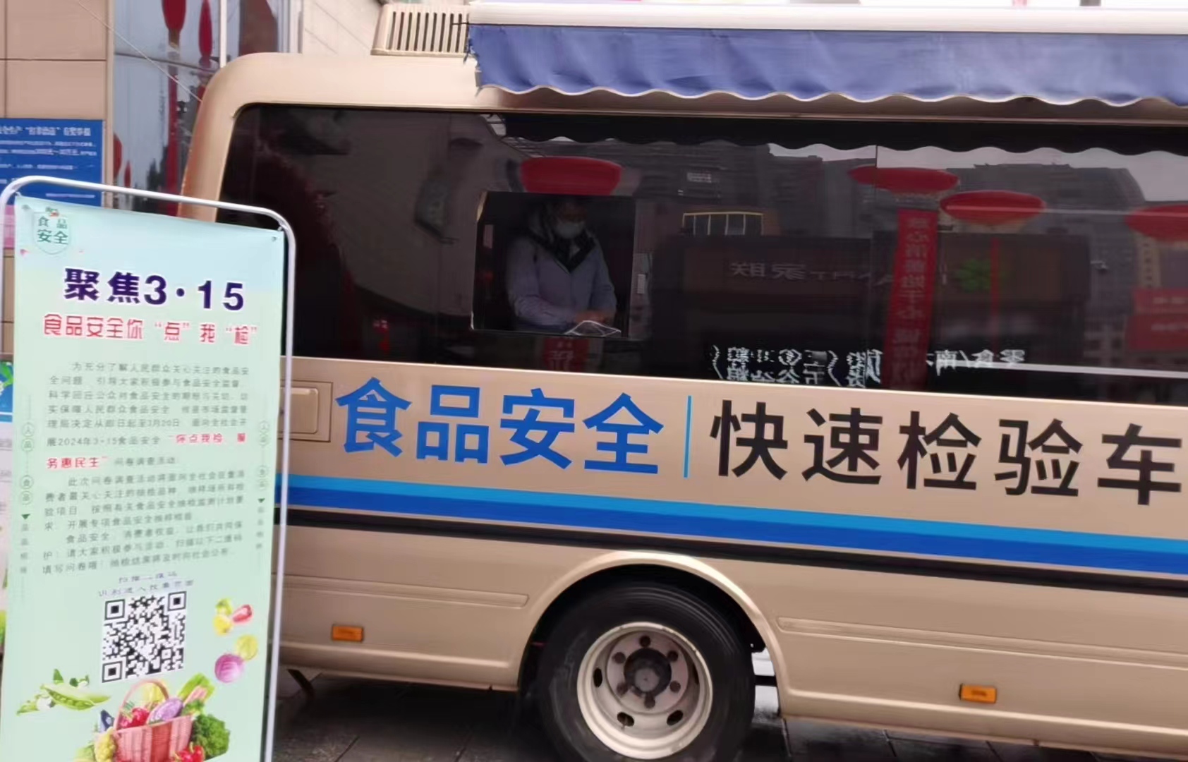 在湘东大市场前坪,通过悬挂宣传标语、发放宣传资料、现场解答咨询等形式,与消费者开展面对面消费维权法律知识宣传教育,特别针对涉及民生的食品、保健品、预付费等消费维权热点难点问题,如何正确选购和防范假冒伪劣产品加大了宣传力度,并讲解了常见的消费陷阱、消费侵权行为和表现形式,引导消费者科学、理性消费,提高维权意识。同时部分工作人员深入一线,在农贸市场、超市等地向商户和消费者发放宣传资料,普及相关法律知识,引导商户明码标价、不虚假宣传,共同维护全县人民群众消费安全。市监局还在活动现场设立了食品安全快速检测区,为消费者现场提供果蔬、生鲜免费农残兽药快检服务,并鼓励群众积极参与"你点我检",在场群众纷纷拿着各种蔬菜、肉类等食用农产品前来检测,获得了群众点赞表扬。