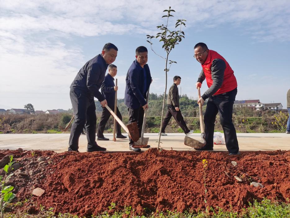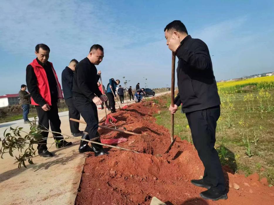 植树现场,大家纷纷拿起铁锹、锄头,扶正树苗,压实定根,干劲十足,充分发扬了团结互助的精神,为空地添上一抹绿,以实际行动践行"绿水青山就是金山银山"的生态理念。