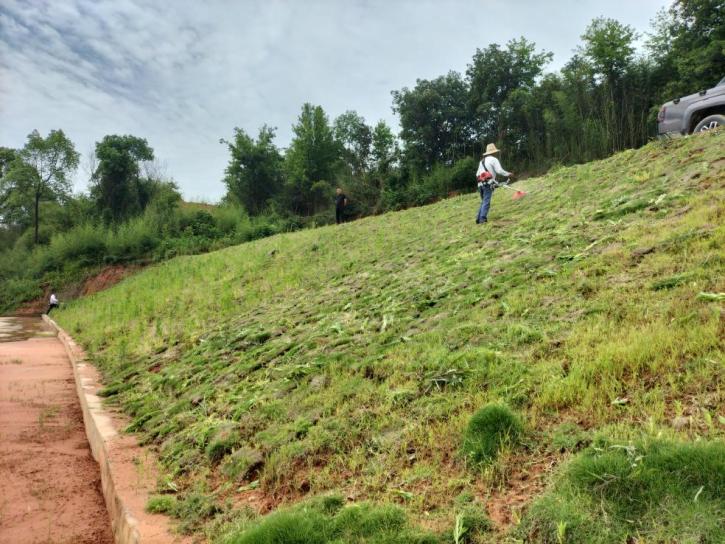 针对杂草杂树严重影响堤防安全和行洪安全等问题,为了更好发挥防洪保护圈的工程效益,维护人民群众的财产安全和生命安全,从2024年6月底开始,攸县水利局组织施工队伍对已建堤防进行大面积的除杂行动,目前,已完成城南谭桥街道、城北春联街道共15公里的堤防除草清杂任务。