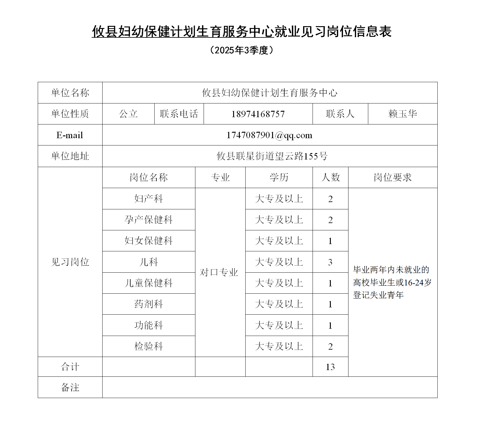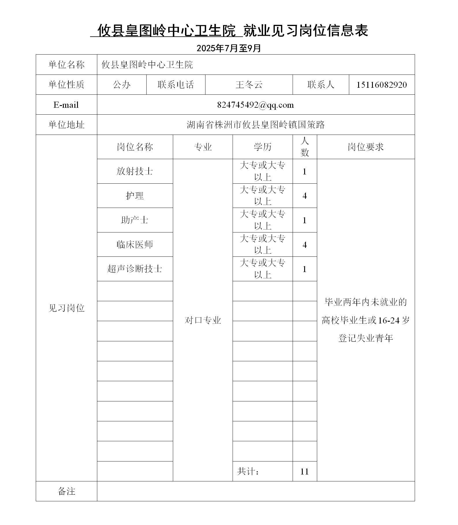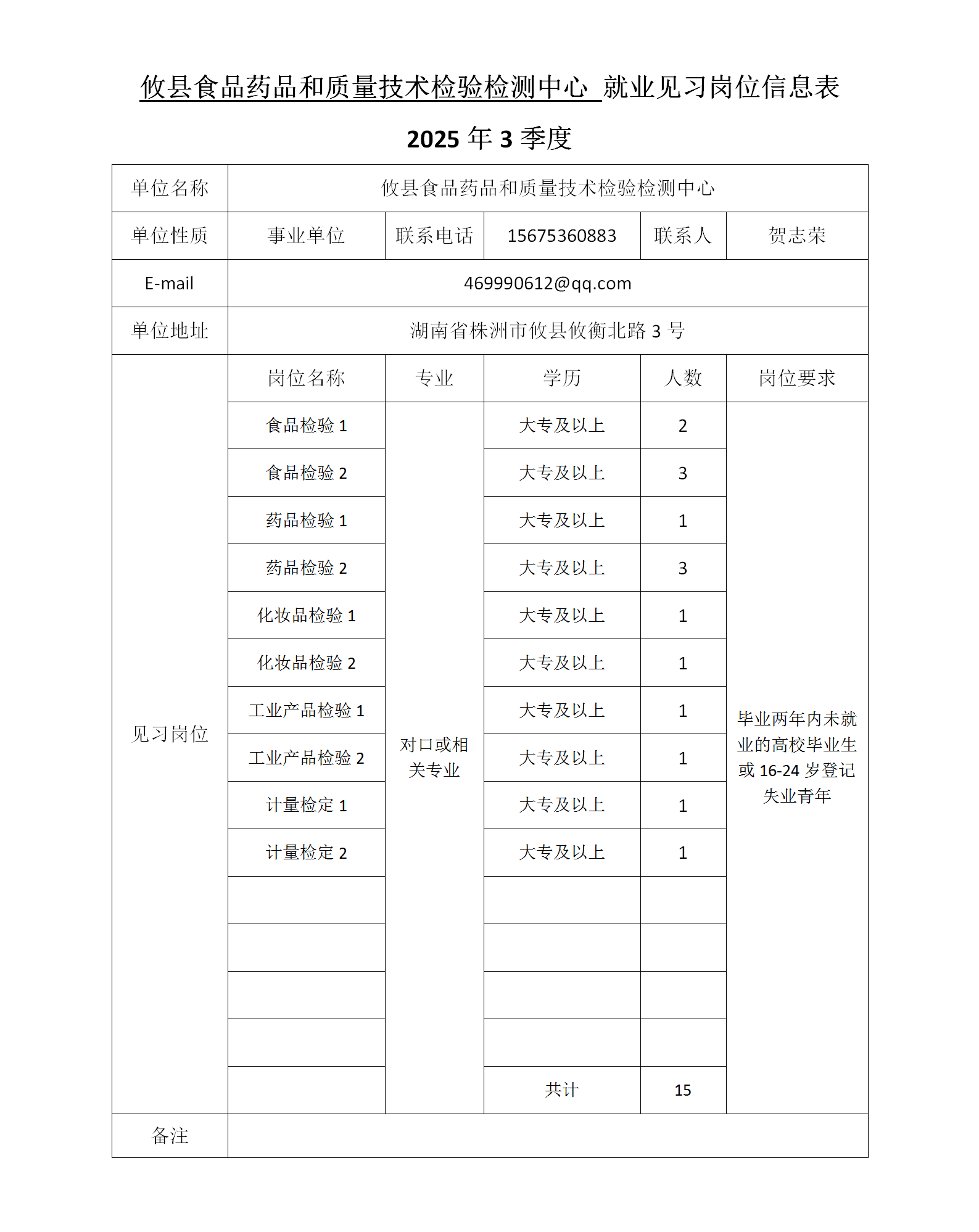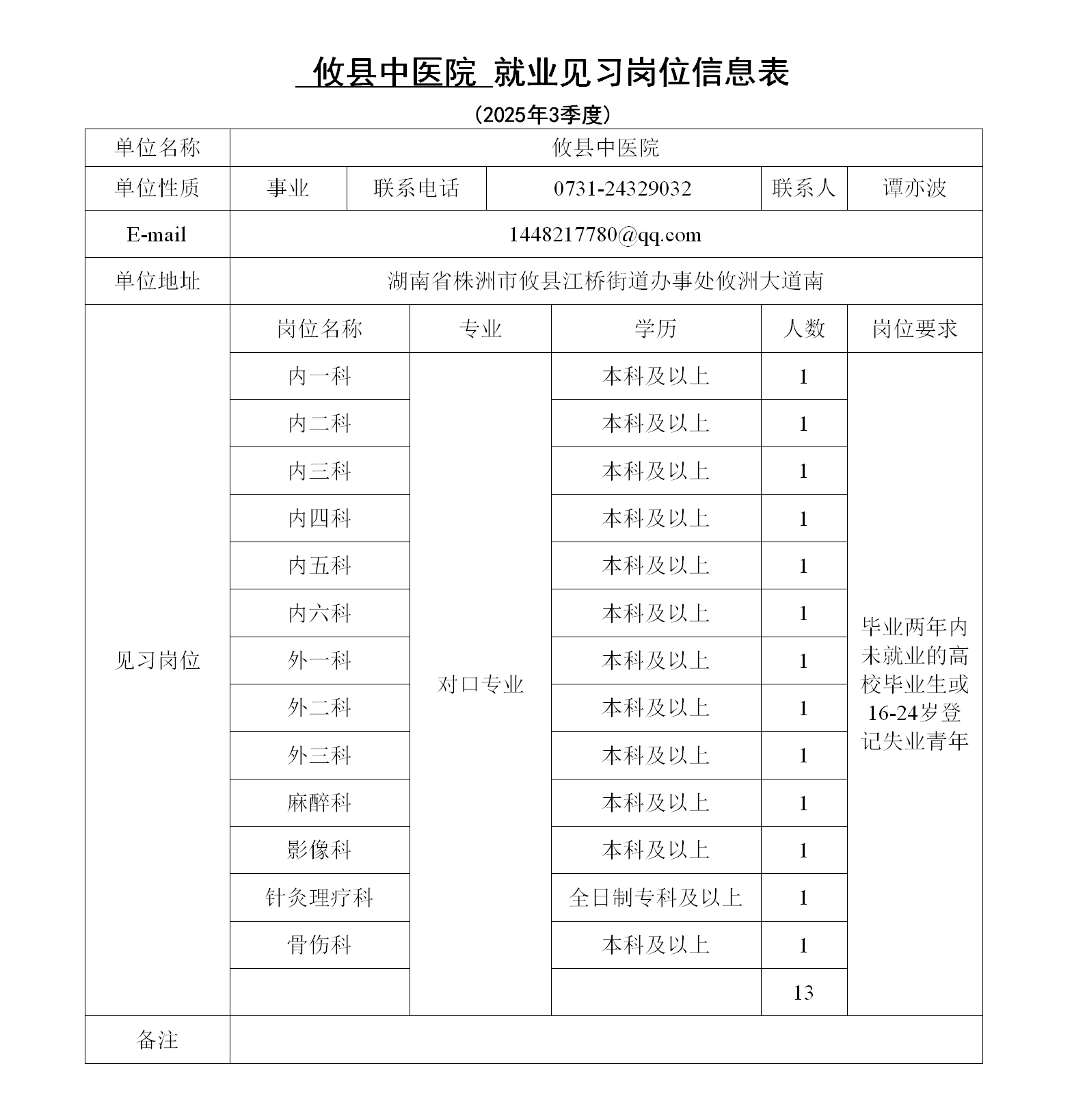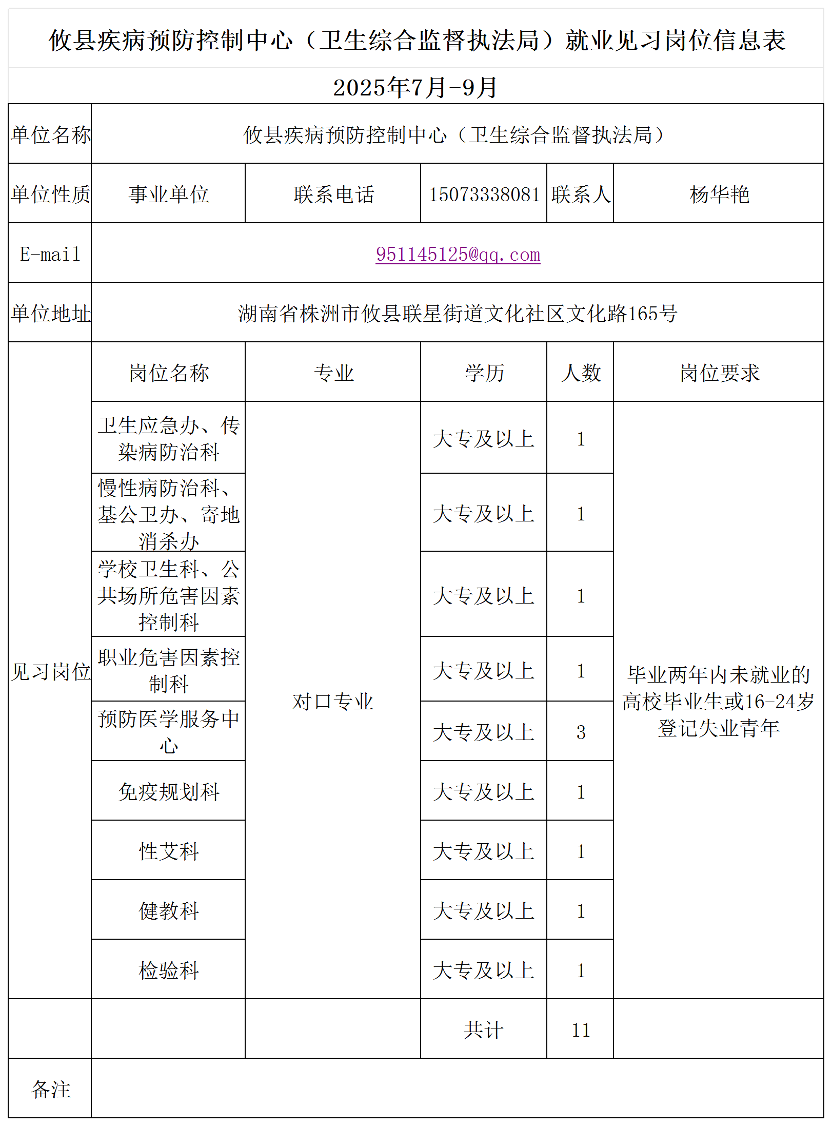攸县妇幼保健计划生育服务中心等11家见习基地2025年第三季度就业见习岗位公示