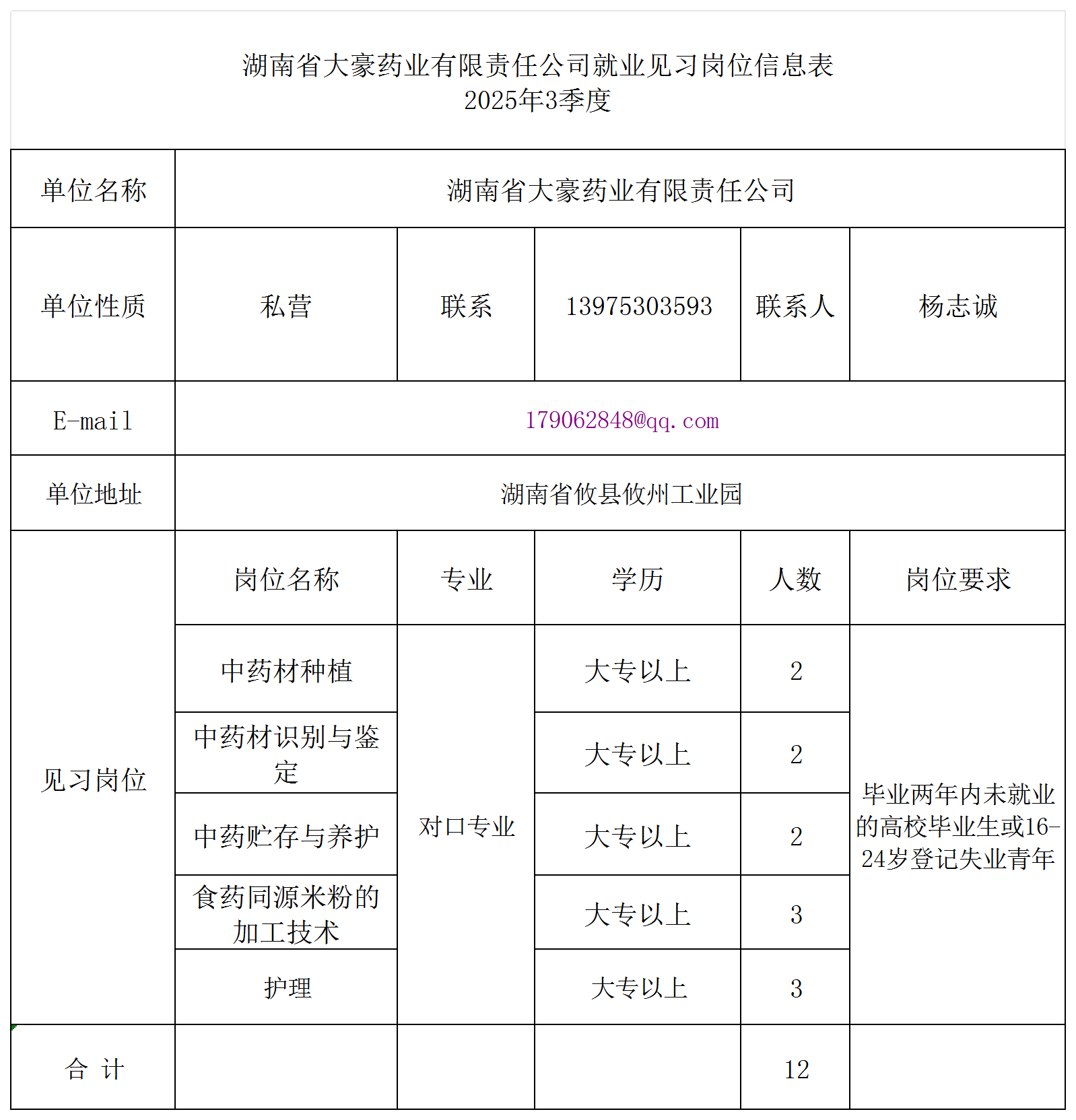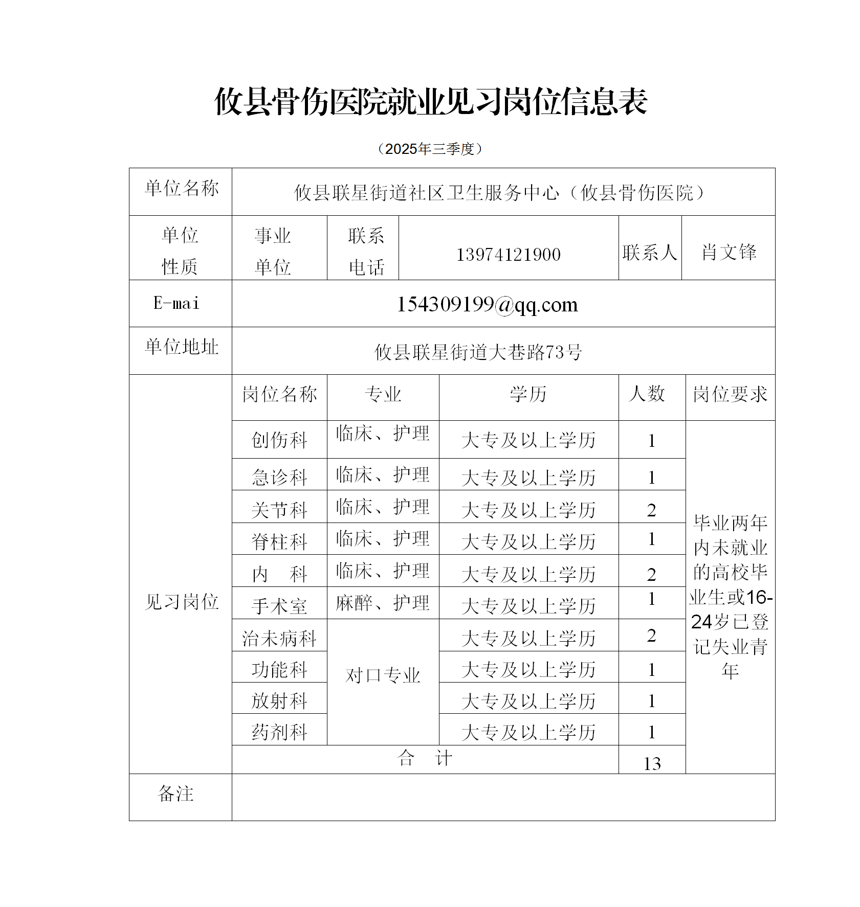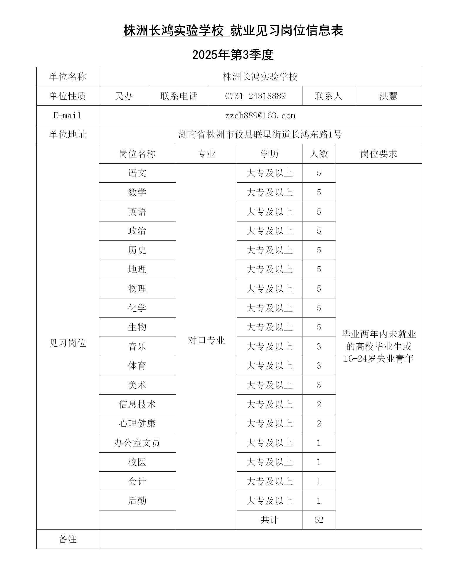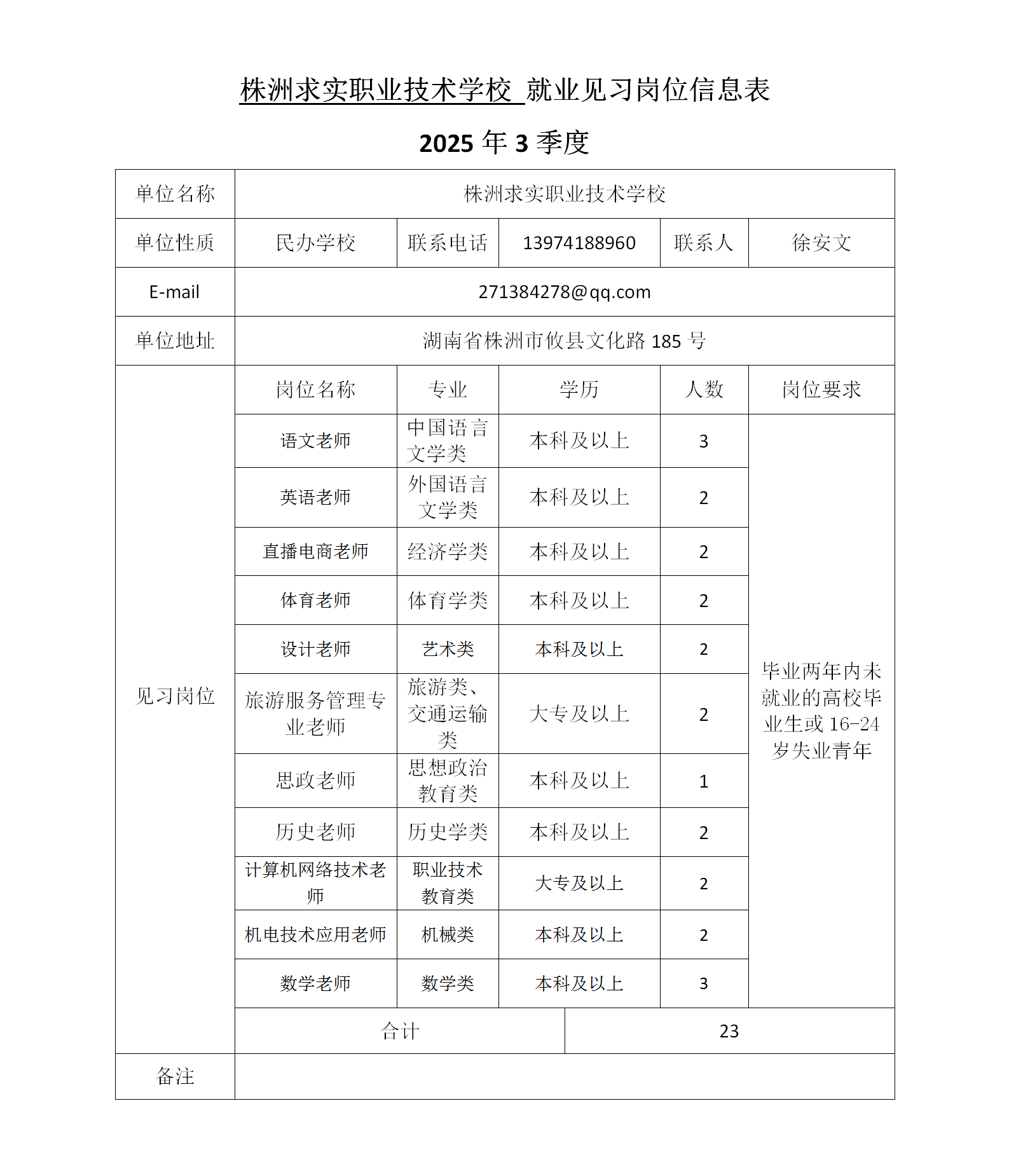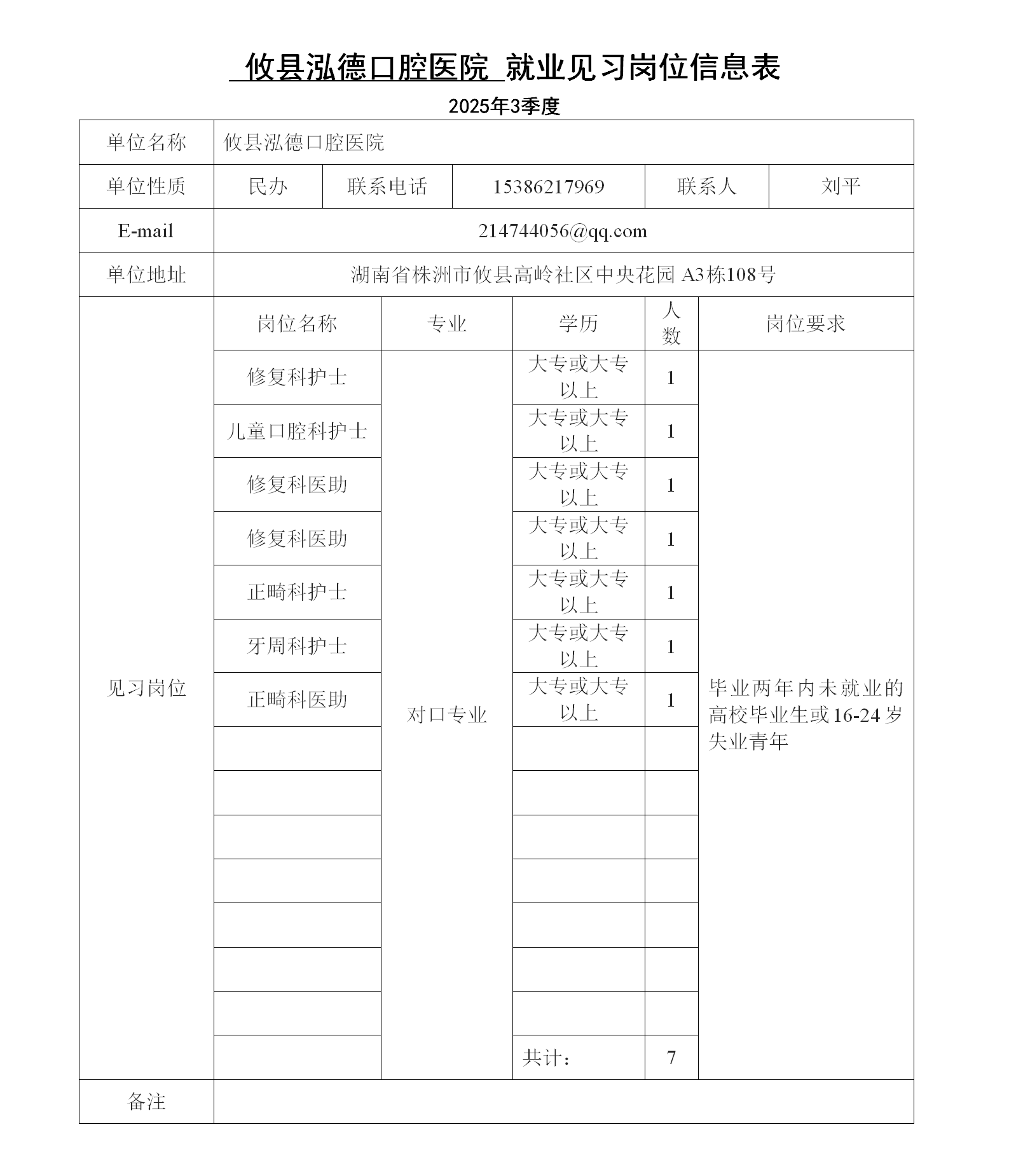 攸县妇幼保健计划生育服务中心等11家见习基地2025年第三季度就业见习岗位公示